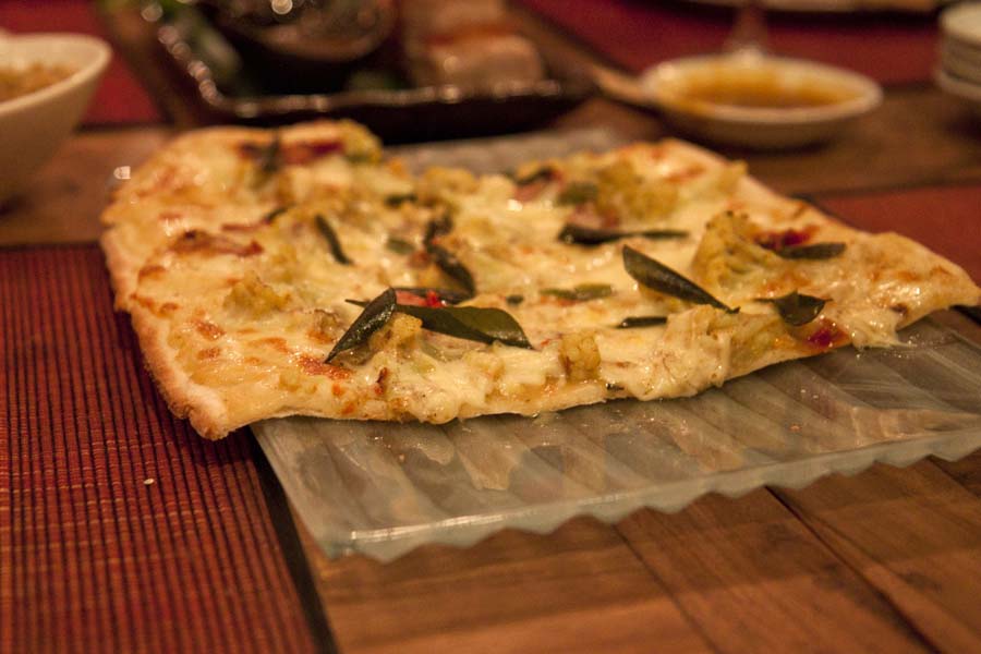IMG_9546CauliflowerCurryPizza Published April 18, 2014 at 900 × 600 in Temples Ulan Danu Bratan & Tanah Lot Curry, cauliflower pizza at Ginger Moon