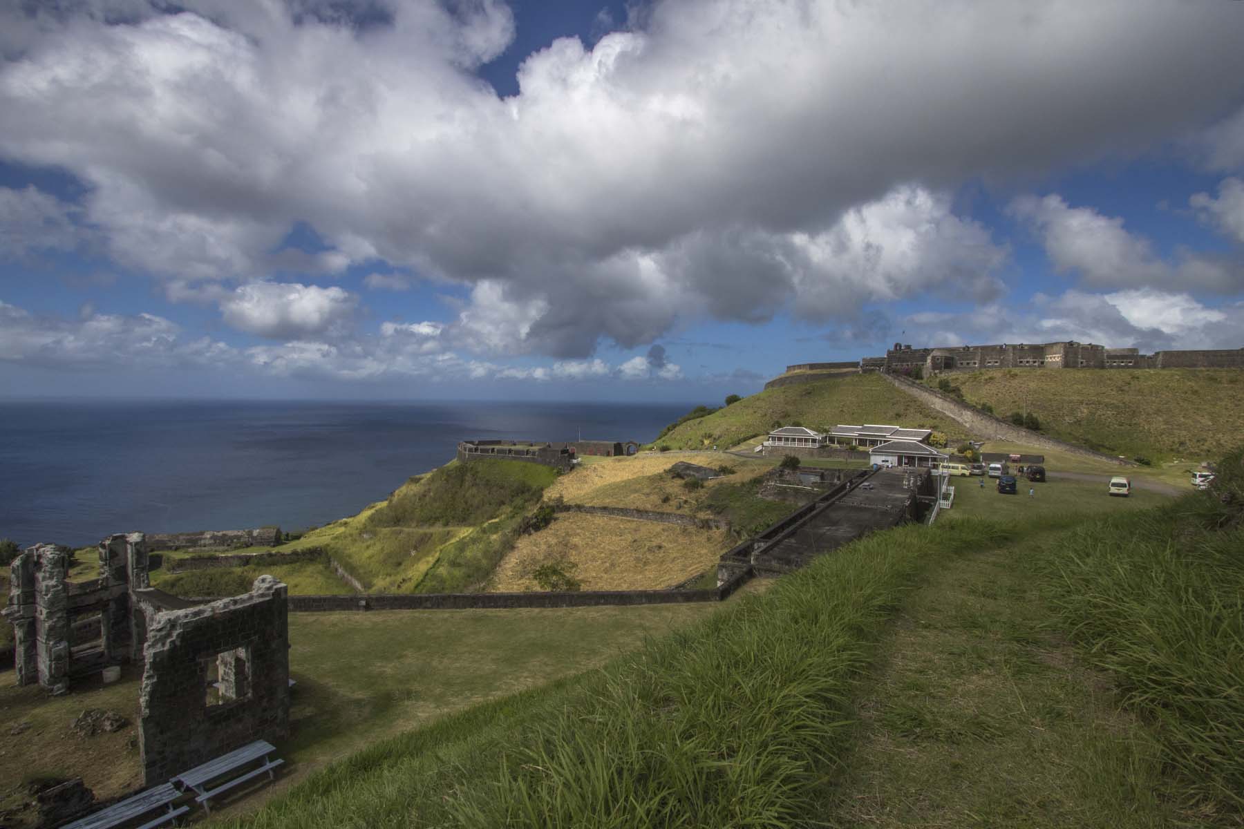 IMG_0926FortView Published April 17, 2017 at 1800 × 1200 in Caribbean Cruise (Part 2) – St Martin, St Kitts, St Vincent’s, Tobago View of Brimstone Fort from nearby hill, St Kitts, Caribbean