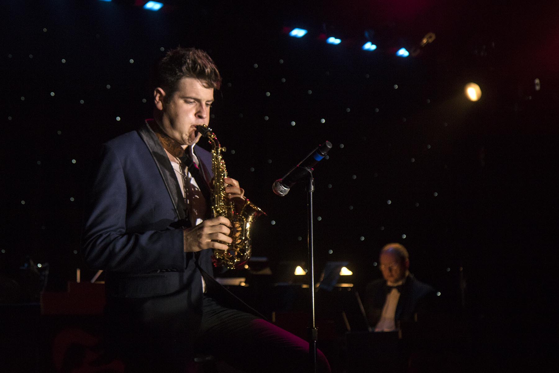 IMG_1391OliN Published April 17, 2017 at 1800 × 1200 in Caribbean Cruise (Part 2) – St Martin, St Kitts, St Vincent’s, Tobago Oli Nez on saxophone, Christmas Day, Ocean Princess
