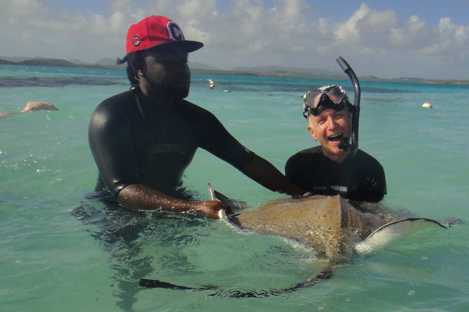 DSC05950JohnRay Published April 28, 2017 at 1800 × 1200 in Caribbean Cruise (Part 3) – Silver Moon Barbados, Martinique, Antigua John and his ray, Stingray City, Antigua, Caribbean