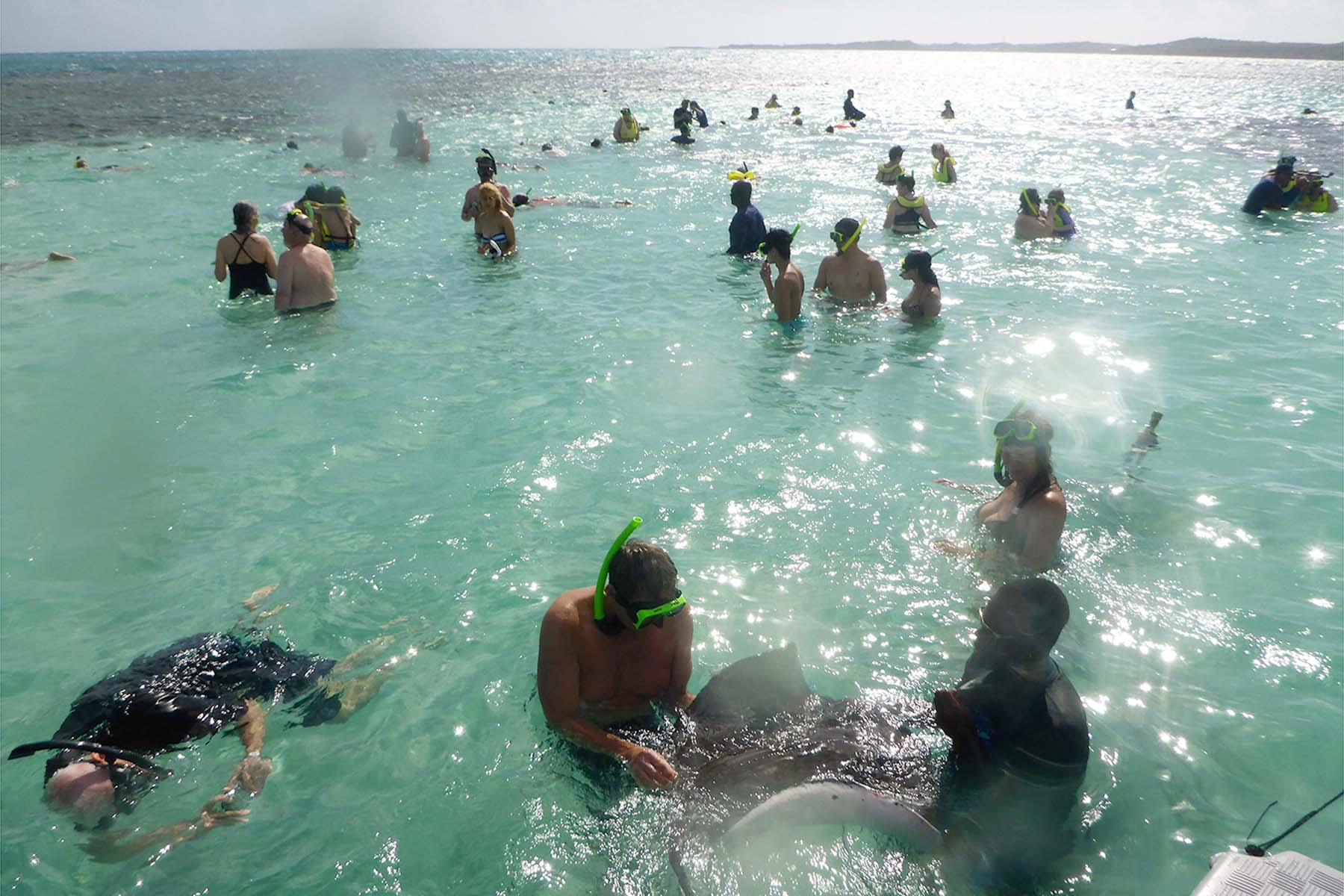 P1010168InTheWAter Published April 28, 2017 at 1800 × 1200 in Caribbean Cruise (Part 3) – Silver Moon Barbados, Martinique, Antigua Everyone in the water with the rays, Stingray City, Antigua, Caribbean (photo by Dieter Neumann)