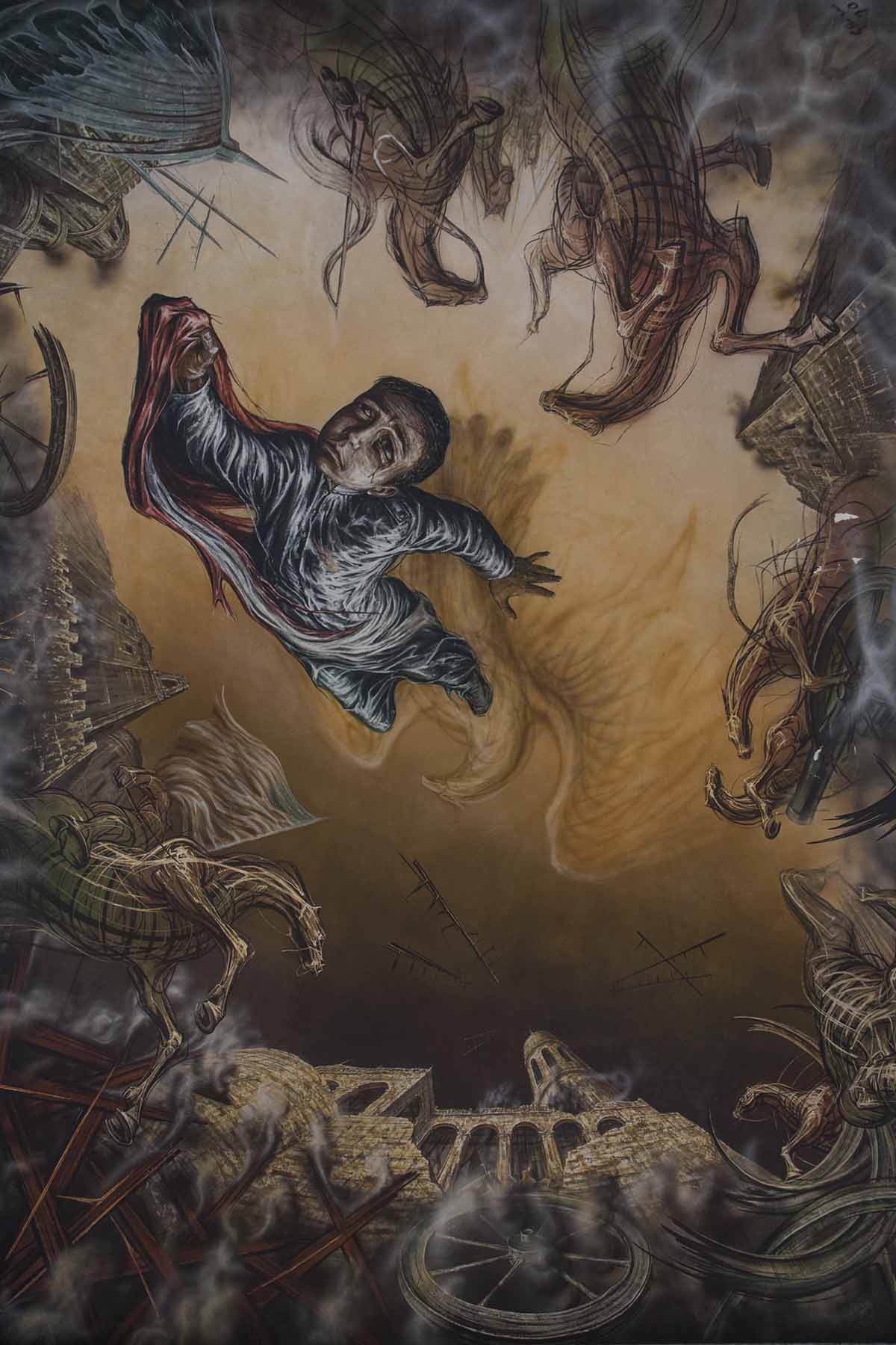 IMG_0176CeilingOverStaircase Published May 15, 2016 at 1200 × 1800 in Mexico City (Part 1) – Bosque de Chapultepec and its museums The famous mural by Gabriel Flores depicting the Battle of Chapultepec in Castillo de Chapultepec, Mexico City
