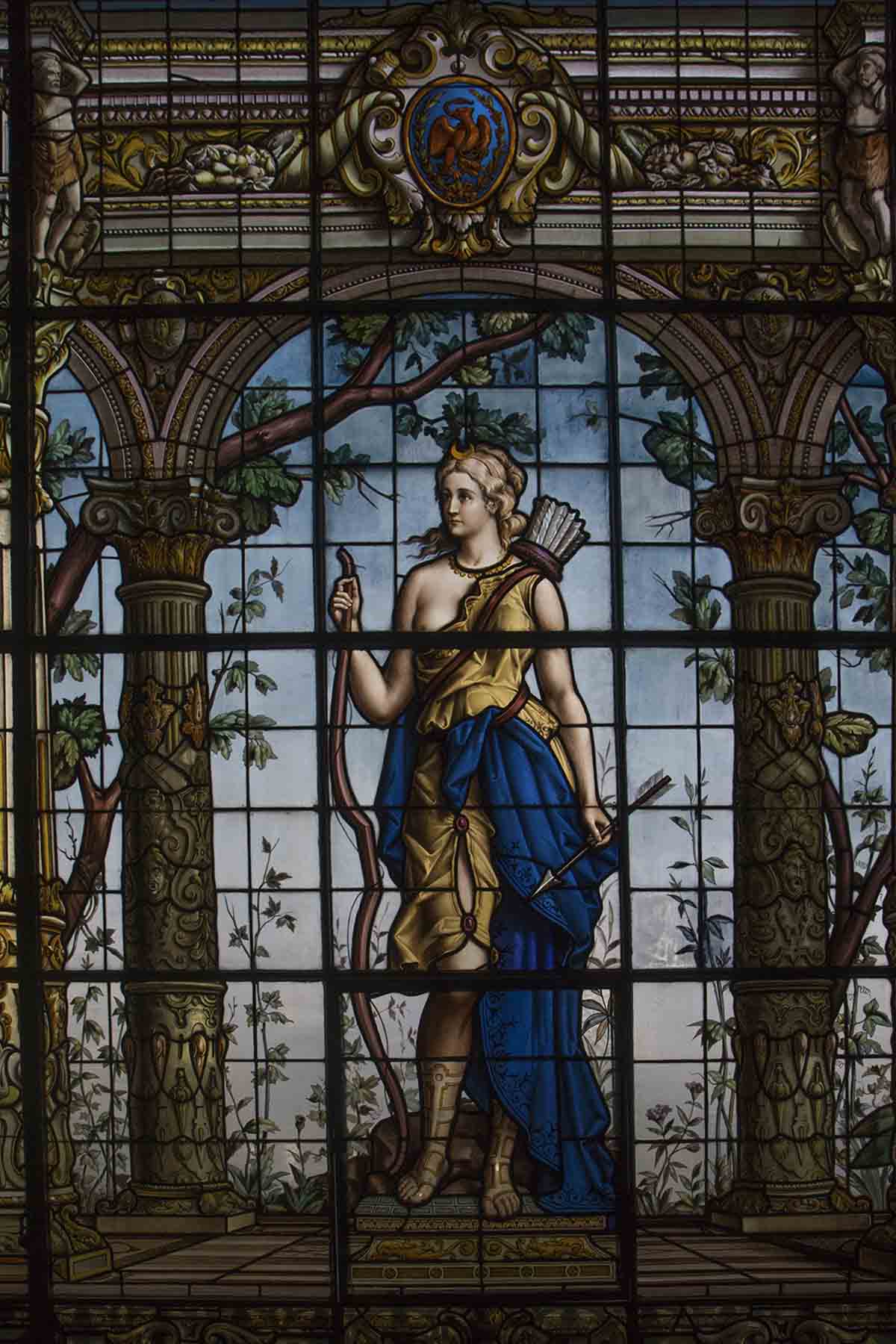 IMG_0271Diana Published May 15, 2016 at 1200 × 1800 in Mexico City (Part 1) – Bosque de Chapultepec and its museums Stained glass window depicting the goddess Diana, Castillo de Chapultepec