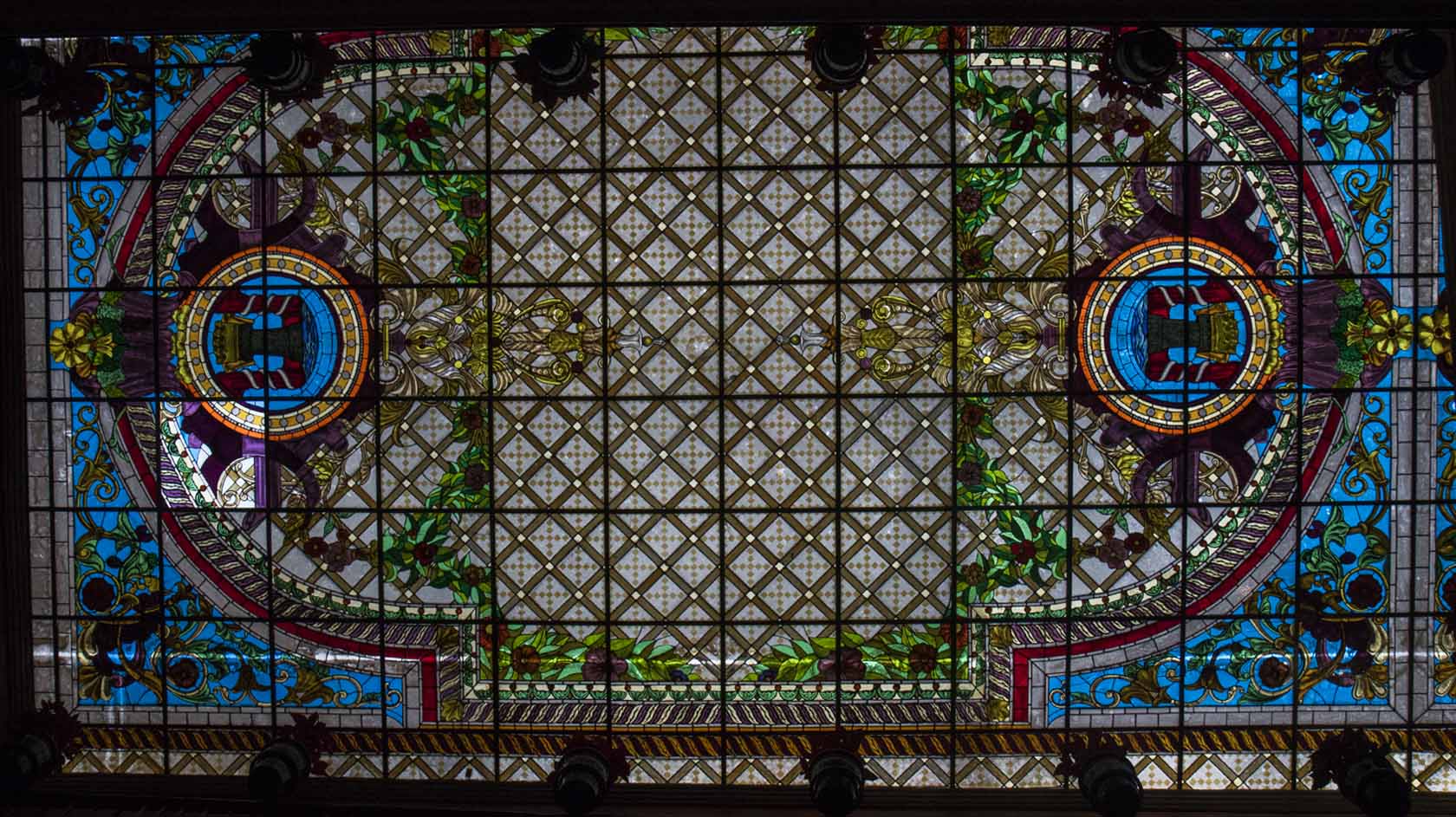 IMG_0780SkyligyhtSaks Published May 22, 2016 at 1680 × 943 in Mexico City (Part 2) – Diego Rivera and Frida Kahlo Stained glass skylight in Saks in San Angel, Mexico City