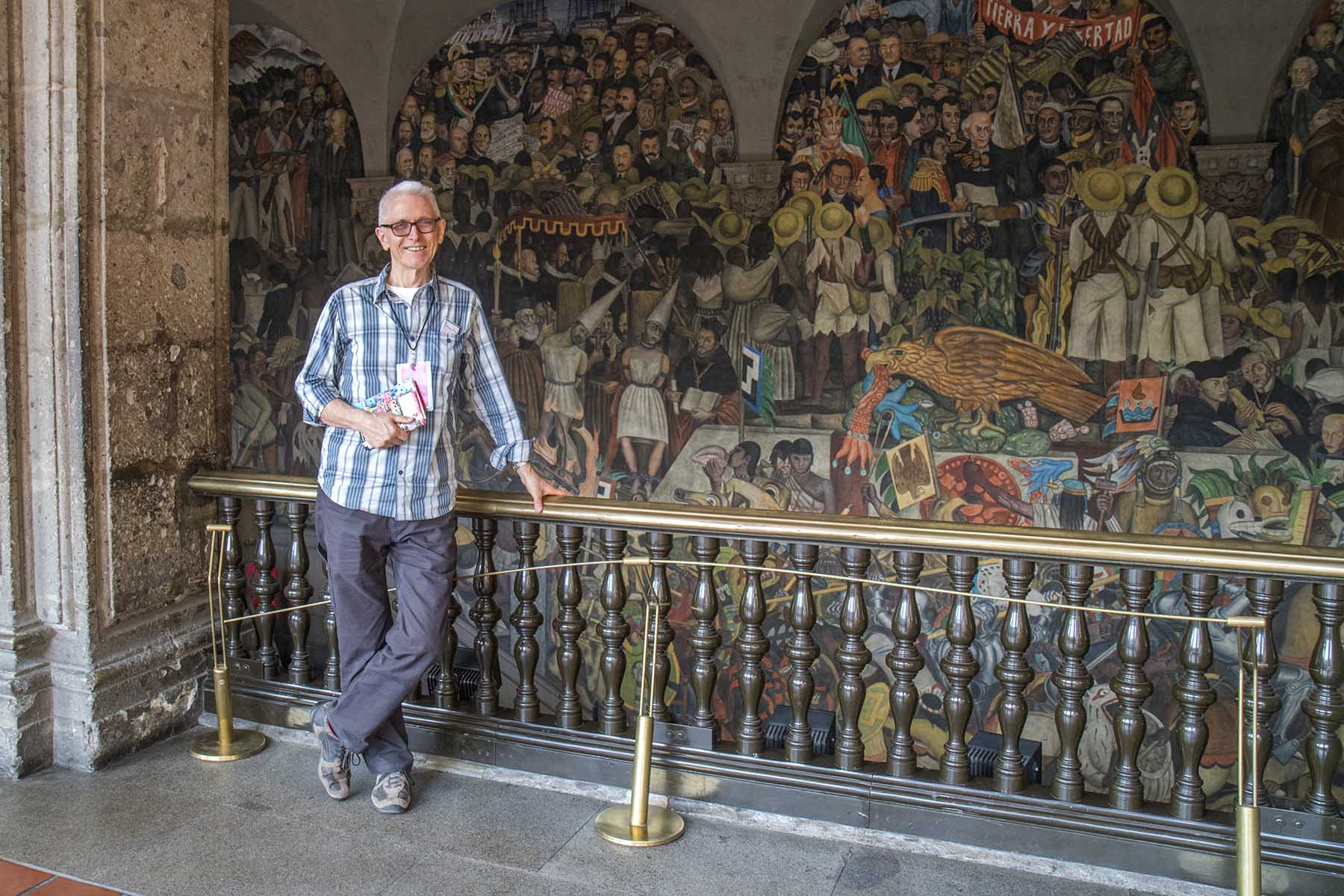 IMG_1649JohnAtMural Published June 5, 2016 at 1800 × 1200 in Mexico City (Part 4) – Centro Historico John by the mural ‘Mexico Through the Ages,’ Palacio Nacional, Mexico City