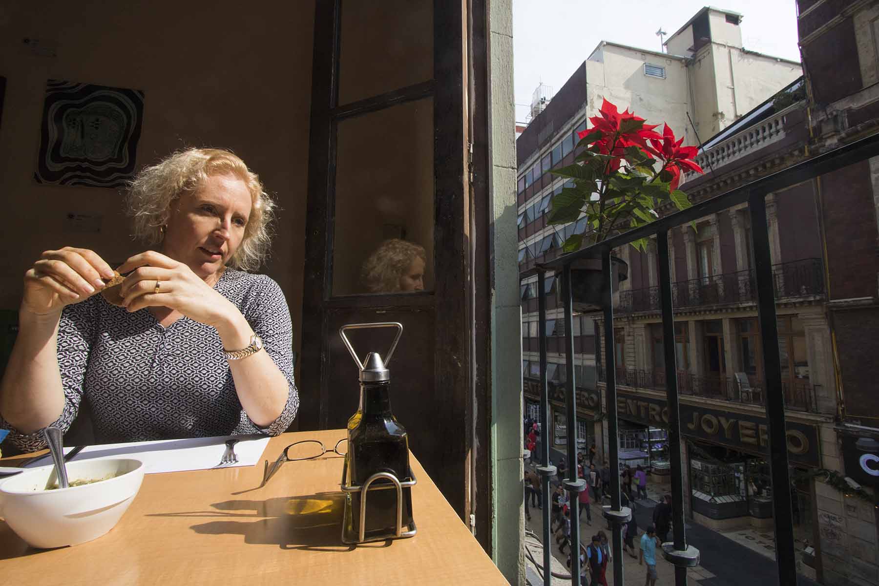 IMG_1809Vegetarian Published June 5, 2016 at 1800 × 1200 in Mexico City (Part 4) – Centro Historico Nic waiting for lunch at Los Vegetarianos, The Madero, Mexico City