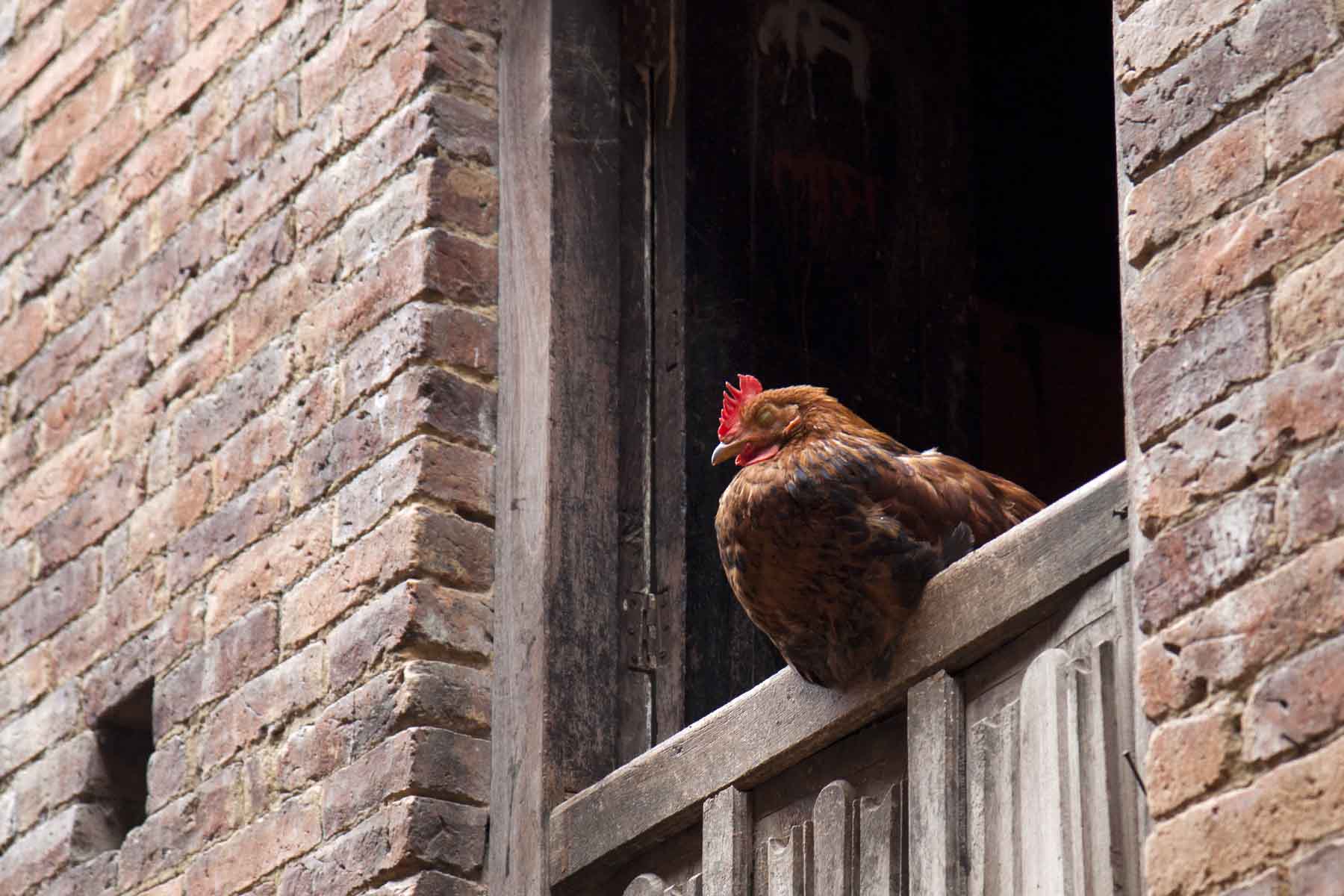IMG_0024Chook Published April 14, 2015 at 1800 × 1200 in IMG_0024Chook Plump, brown chicken on window sill, Bhaktapur, Nepal