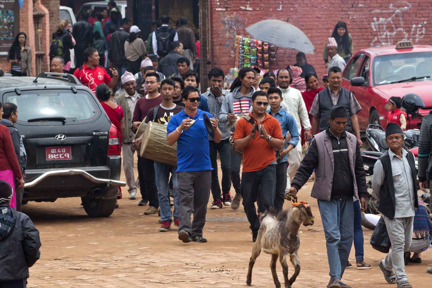 IMG_0184Musos&SacrificialGoat Published April 14, 2015 at 1800 × 1200 in IMG_0184Musos&SacrificialGoat Goat being led to shrine, Bhaktapur, Nepal