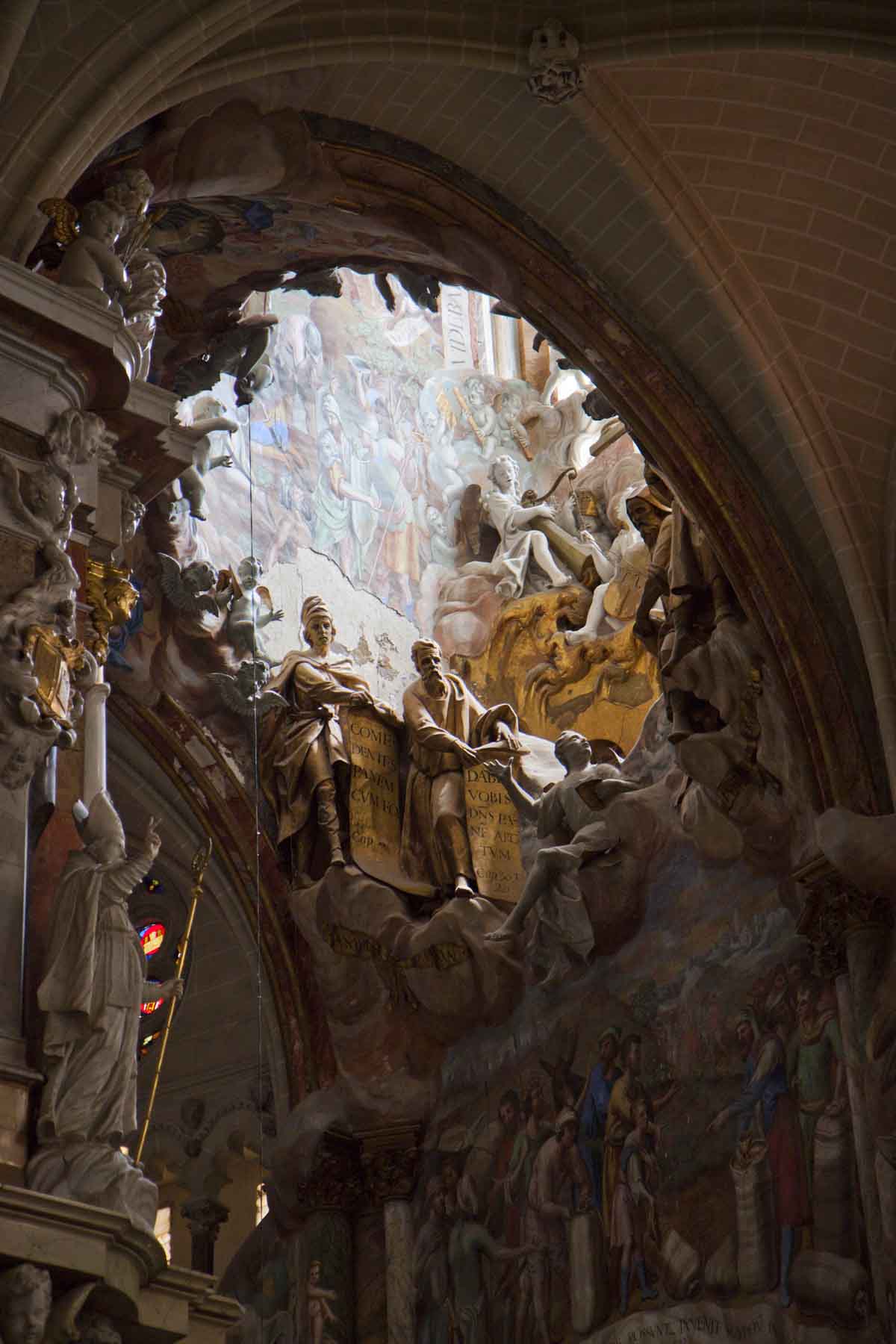 IMG_0218CathedralDetail Published June 24, 2014 at 1200 × 1800 in IMG_0218CathedralDetail Figurines and decorative ceiling, Toledo Catedral, Spain