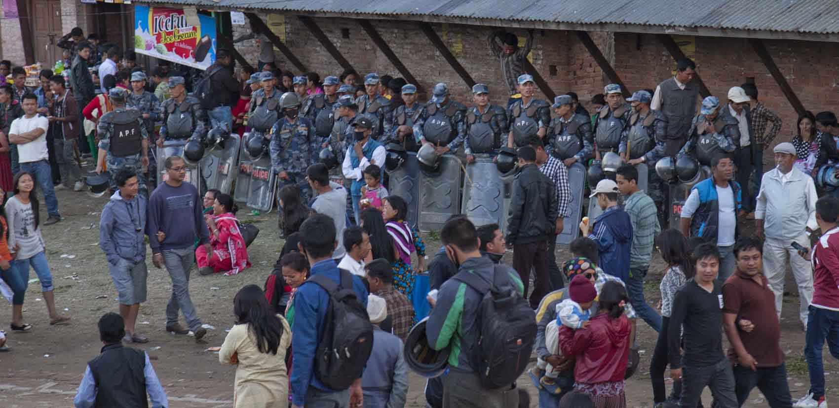 IMG_0651Police Published April 14, 2015 at 1700 × 828 in IMG_0651Police Police at the ready, Bhaktapur, Nepal