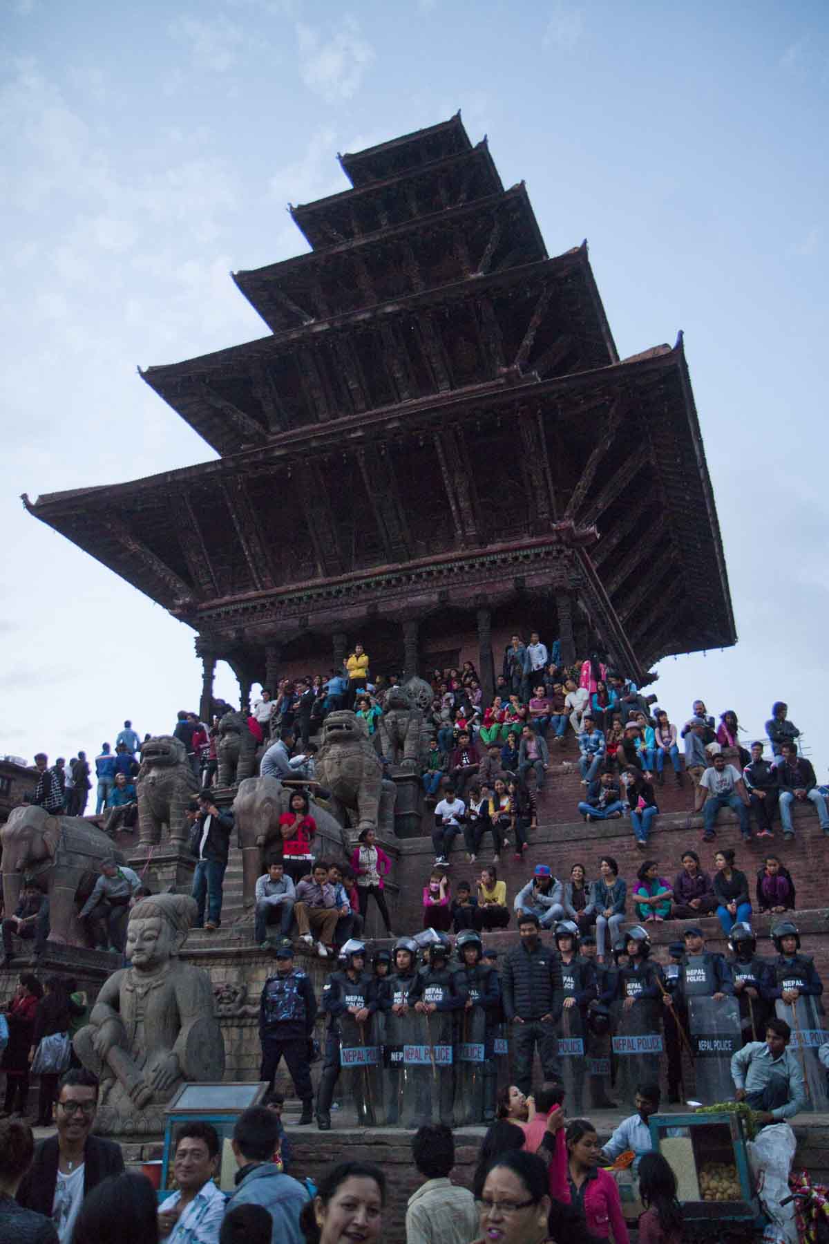 IMG_0766OnTheMonument Published April 14, 2015 at 1200 × 1800 in IMG_0766OnTheMonument Tiered seating at the Bisket Jatra festival, Bhaktapur, Nepal