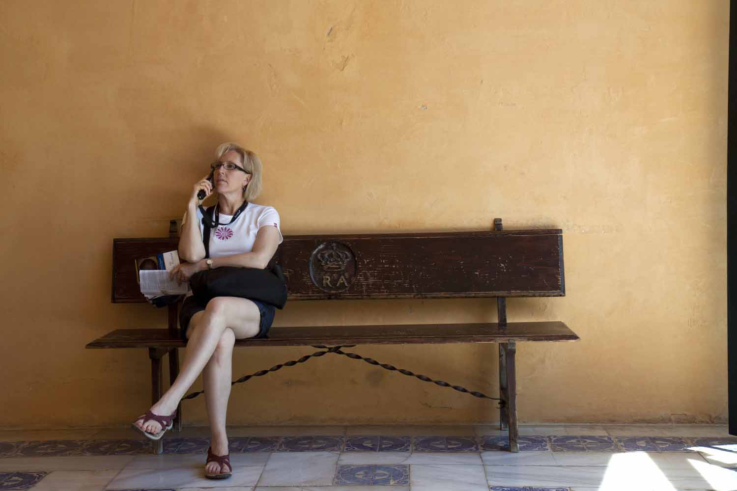 IMG_1645Nic Published June 28, 2014 at 1500 × 1000 in IMG_1645Nic Nic listening to the audio guide, the Royal Alcázar, Seville