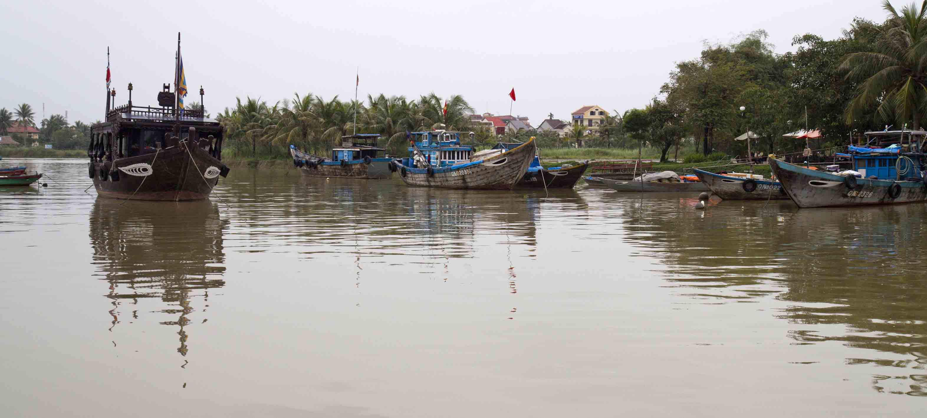 IMG_2213BoatsPano Published January 7, 2013 at 3144 × 1417 in IMG_2213BoatsPano Thu Bon River panorama, Hoi An
