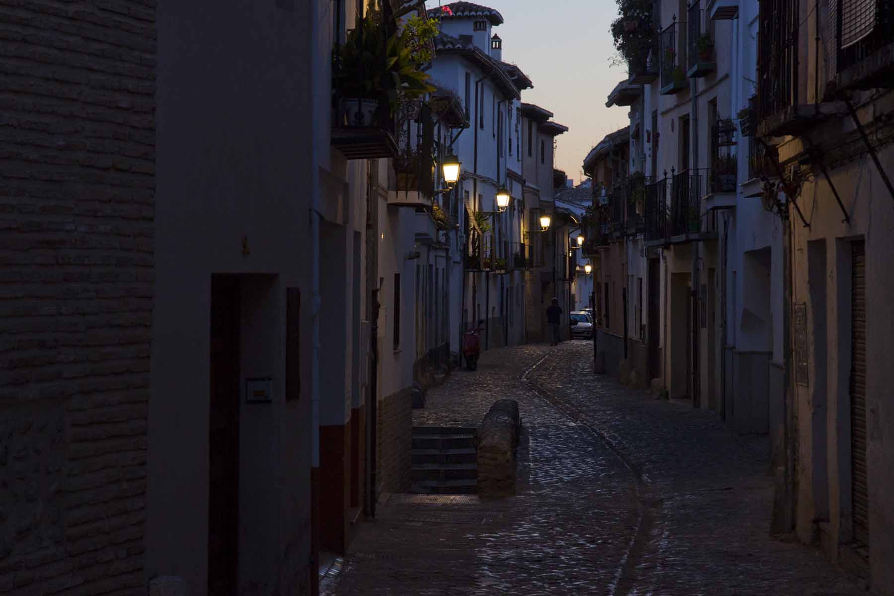 IMG_2860GranadaNightSt Published June 30, 2014 at 1800 × 1200 in IMG_2860GranadaNightSt The cobbled streets and lamps of the Albaicin district, Granada