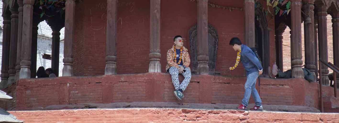 IMG_5046Columns Published April 8, 2015 at 1417 × 514 in IMG_5046Columns Young men atop a temple, Durbar Square, Kathmandu