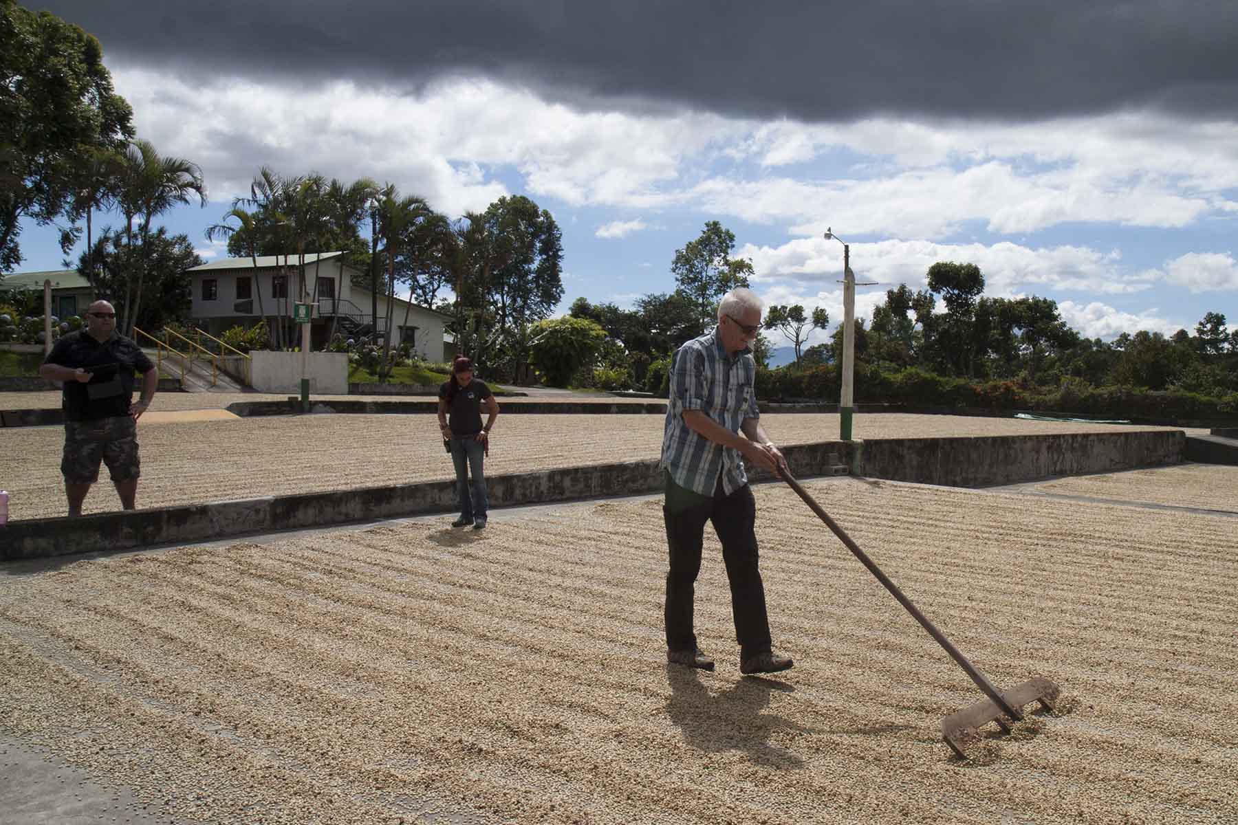 IMG_5065DryingCoffee Published December 22, 2014 at 1800 × 1200 in IMG_5065DryingCoffee John helping to turn the drying coffee beans, Doka Coffee Plantation, Costa Rica