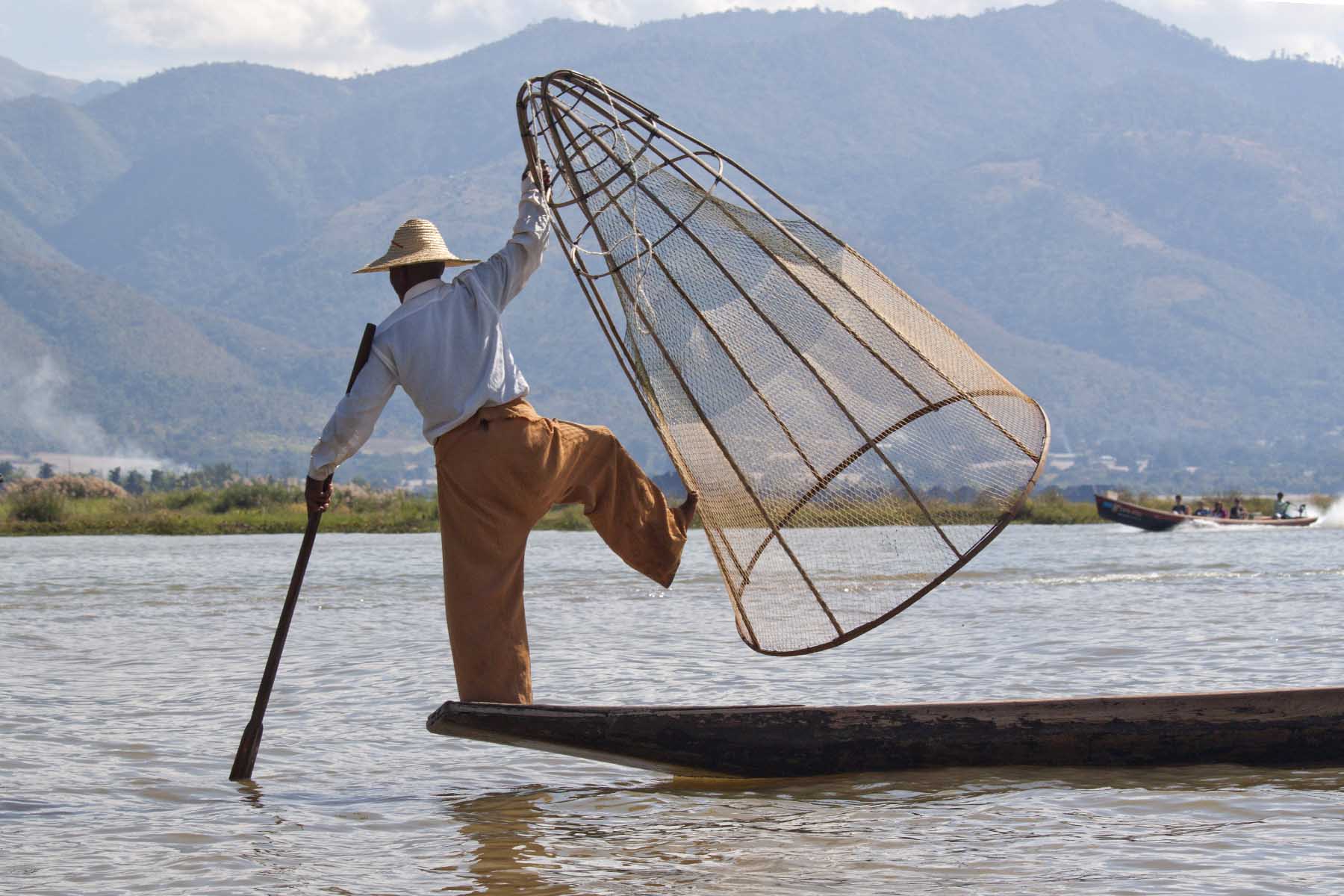IMG_6390BalanceBasket Published December 26, 2012 at 1800 × 1200 in IMG_6390BalanceBasket Perfect balance! – one of the leg-rowing fishermen of Lake Inle