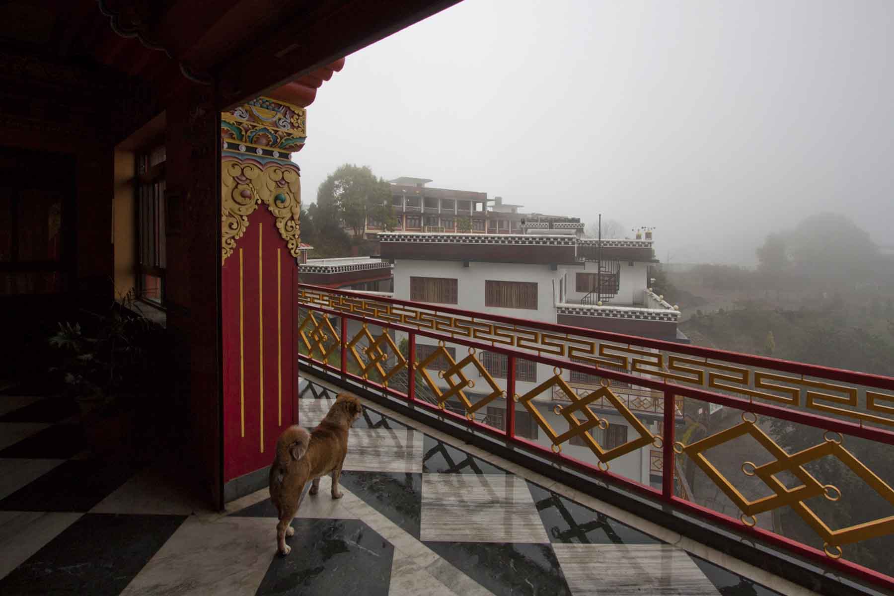 IMG_8383TempleBalcony Published April 13, 2015 at 1800 × 1200 in IMG_8383TempleBalcony Dog enjoying the view from the temple balcony, Namobuddah Monastery, Nepal