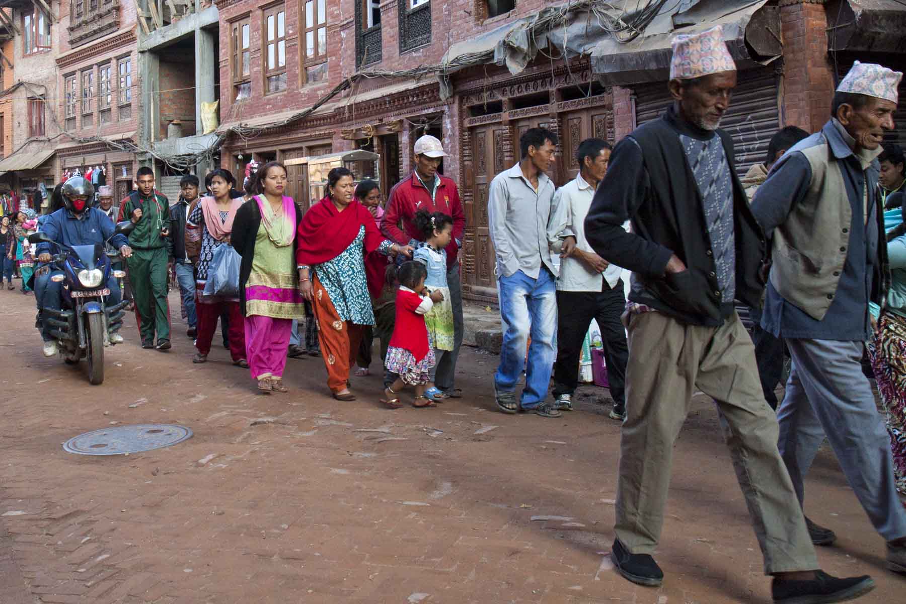 IMG_8681Festive2 Published April 13, 2015 at 1800 × 1200 in IMG_8681Festive2 Family and friends walk together to Taumadhi Square, Bhaktapur, Nepal