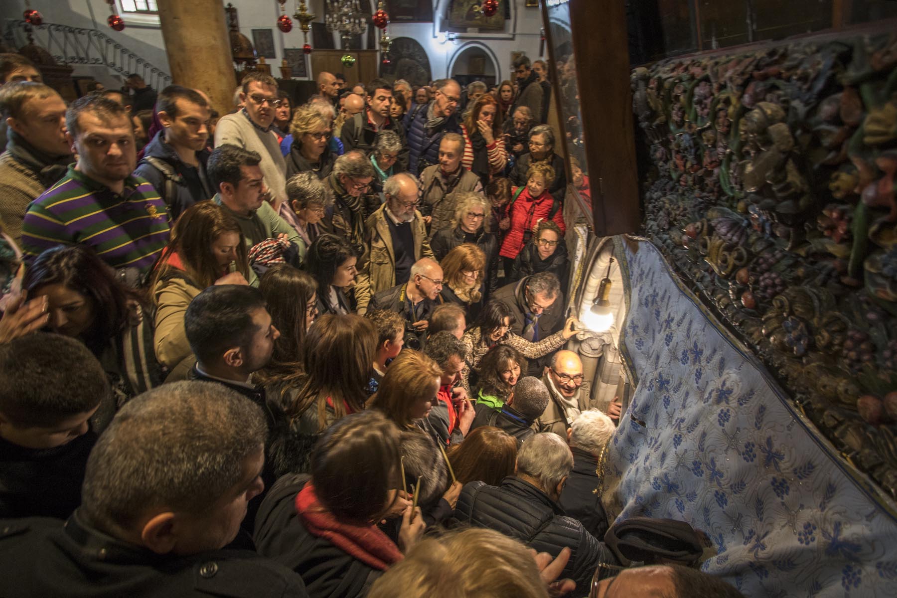 IMG_7099Queue Published December 27, 2018 at 1800 × 1200 in Jerusalem (Part 1) – Bethlehem and Israel Museum Pushing to enter the manger in the Church of the Nativity, Bethlehem