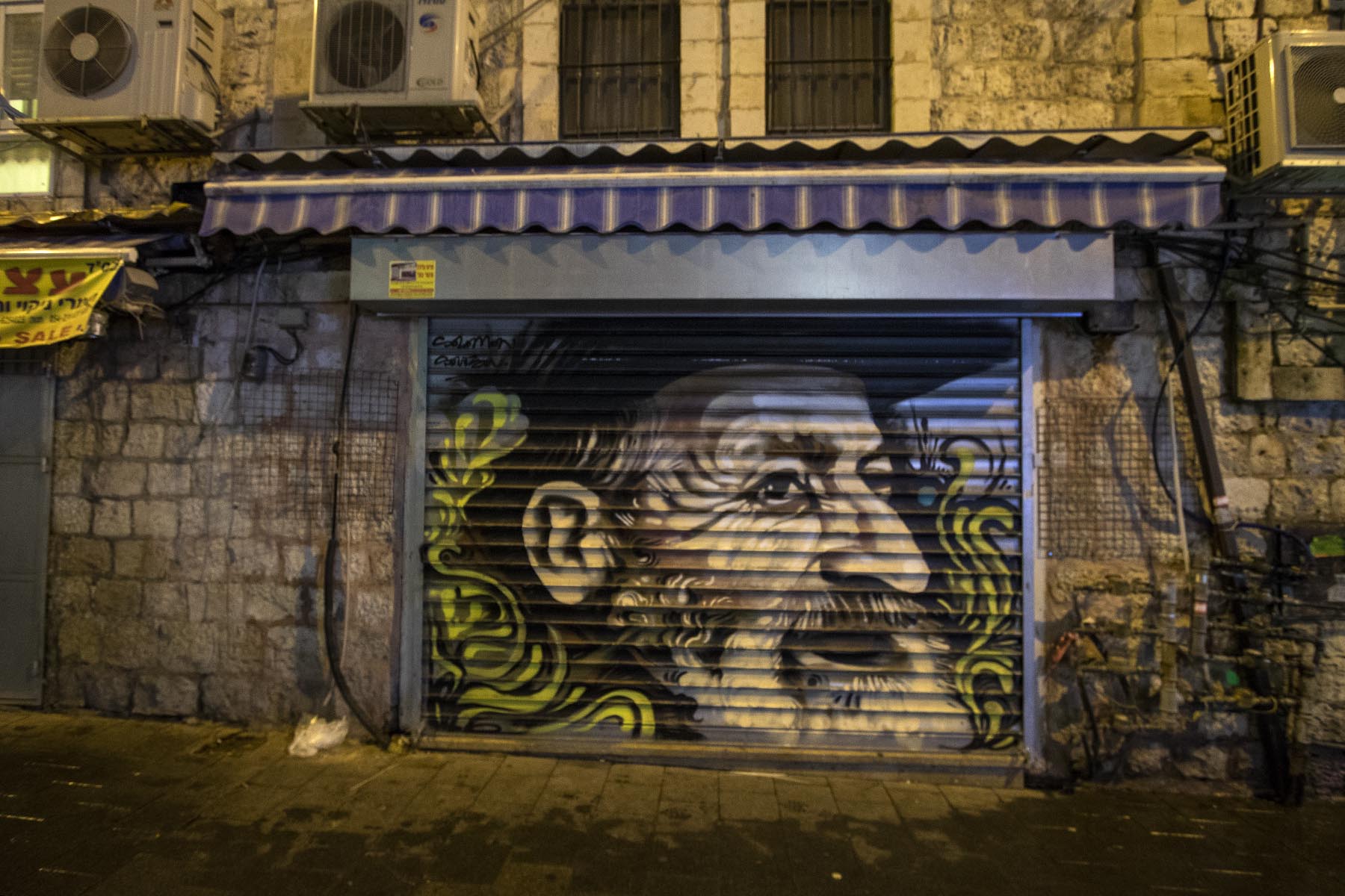 IMG_8304RollerDoor Published January 4, 2019 at 1800 × 1200 in Jerusalem (Part 3) – Yad Vashem, Machane Yehuda Markets & Machneyuda Painted roller door, Jerusalem