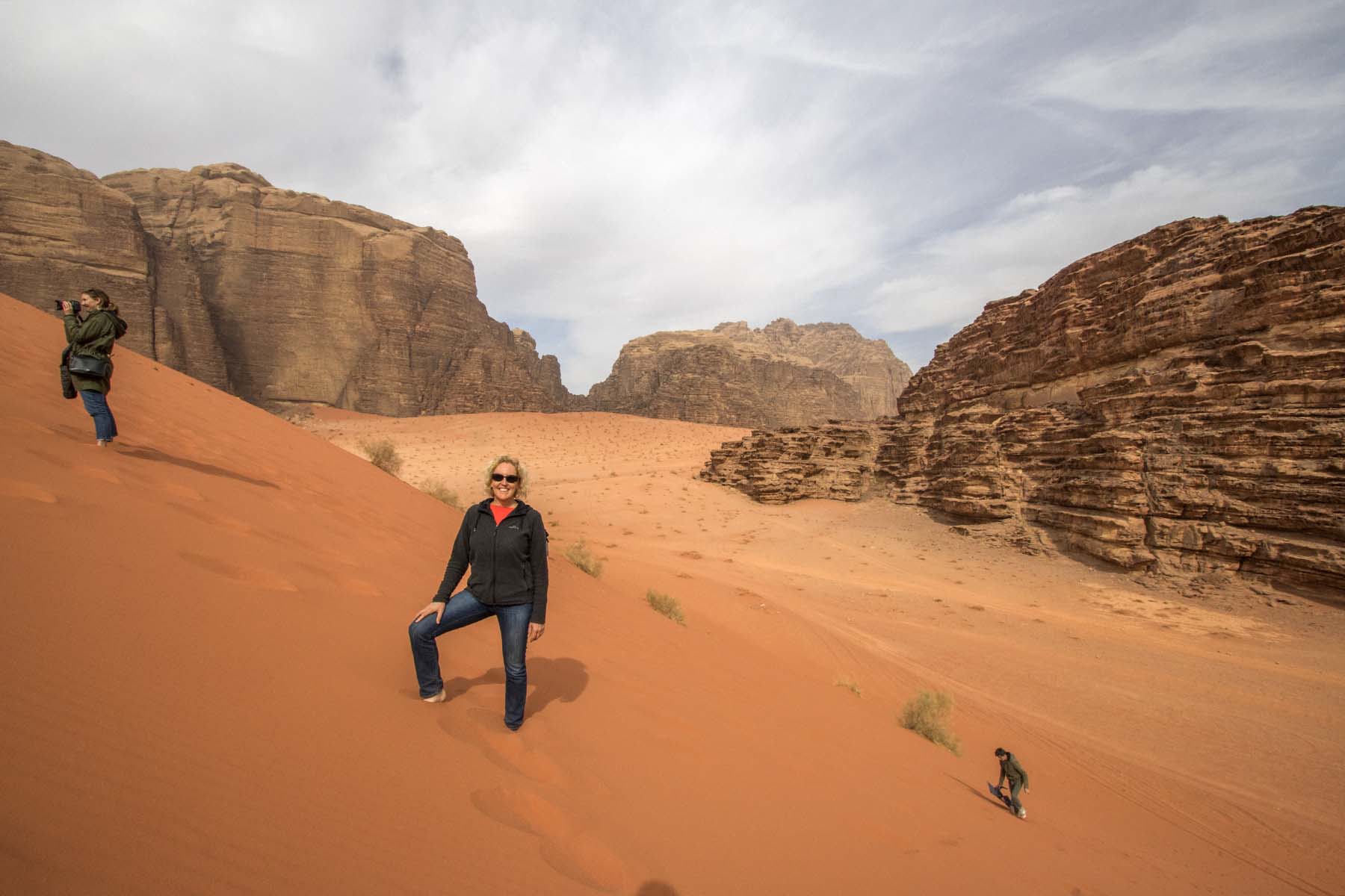 IMG_5929WAdiNicSand Published November 7, 2018 at 1800 × 1200 in Wadi Rum, Jordan Nic triumphant in her sand dune climb, Wadi Rum, Jordan