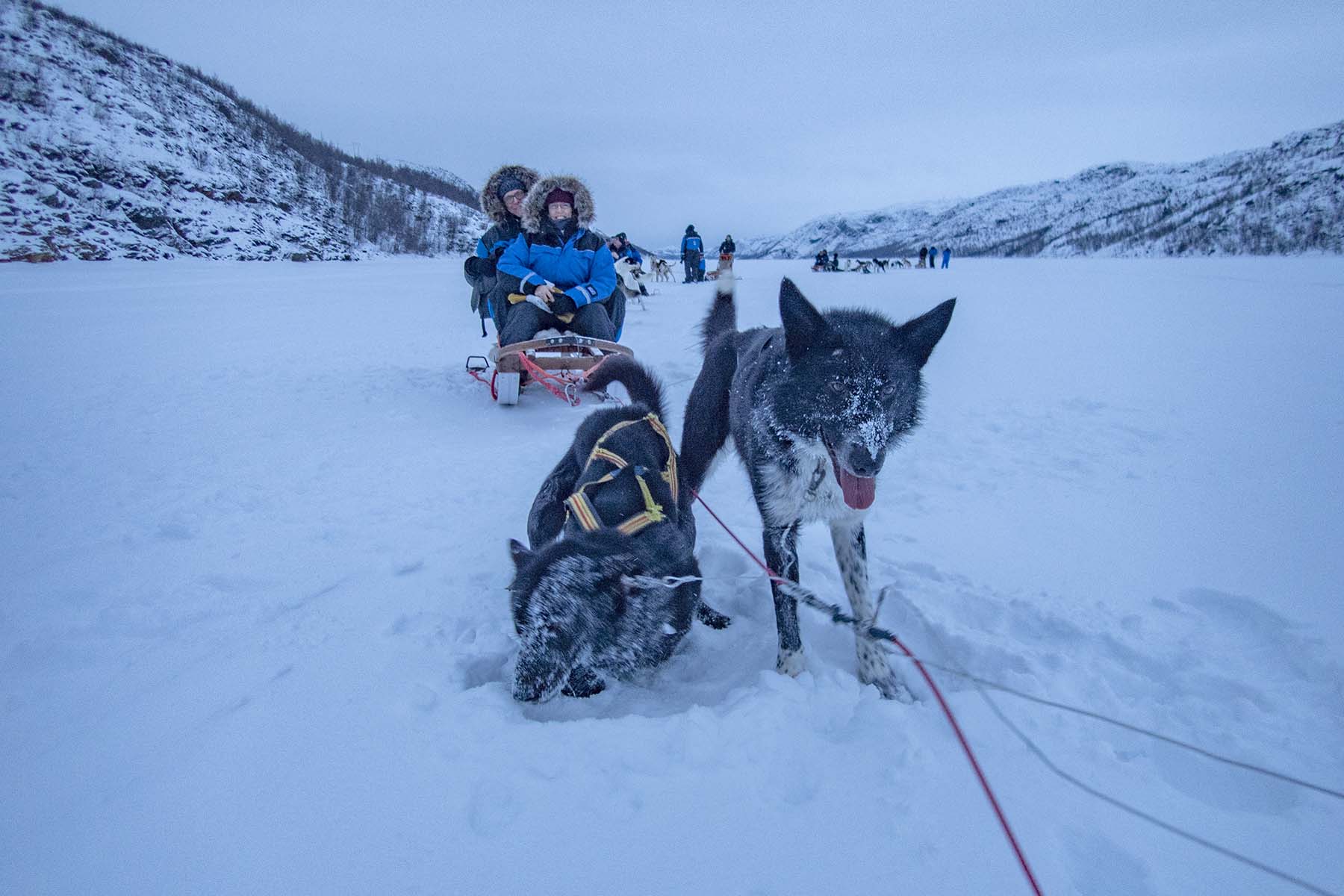 P104014995 Published April 13, 2019 at 1800 × 1200 in MS Nordnorge, Norway Nic and John and the brother pair of huskies, Snowhotel, Kirkenes, Norway