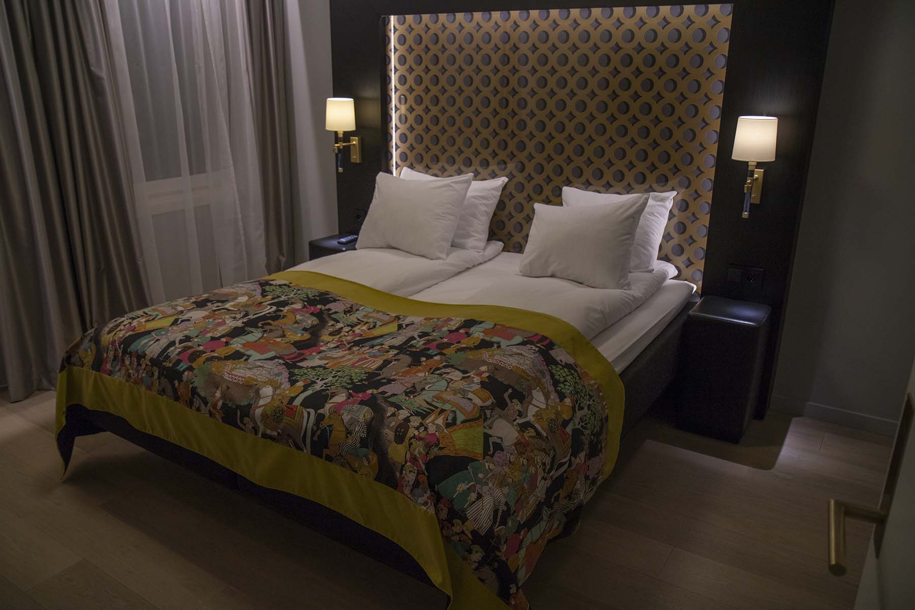 IMG_6618RozBed Published April 15, 2019 at 1800 × 1200 in Oslo, Norway Bedroom of the business room, Thon Hotel Rosenkrantz Oslo, Norway