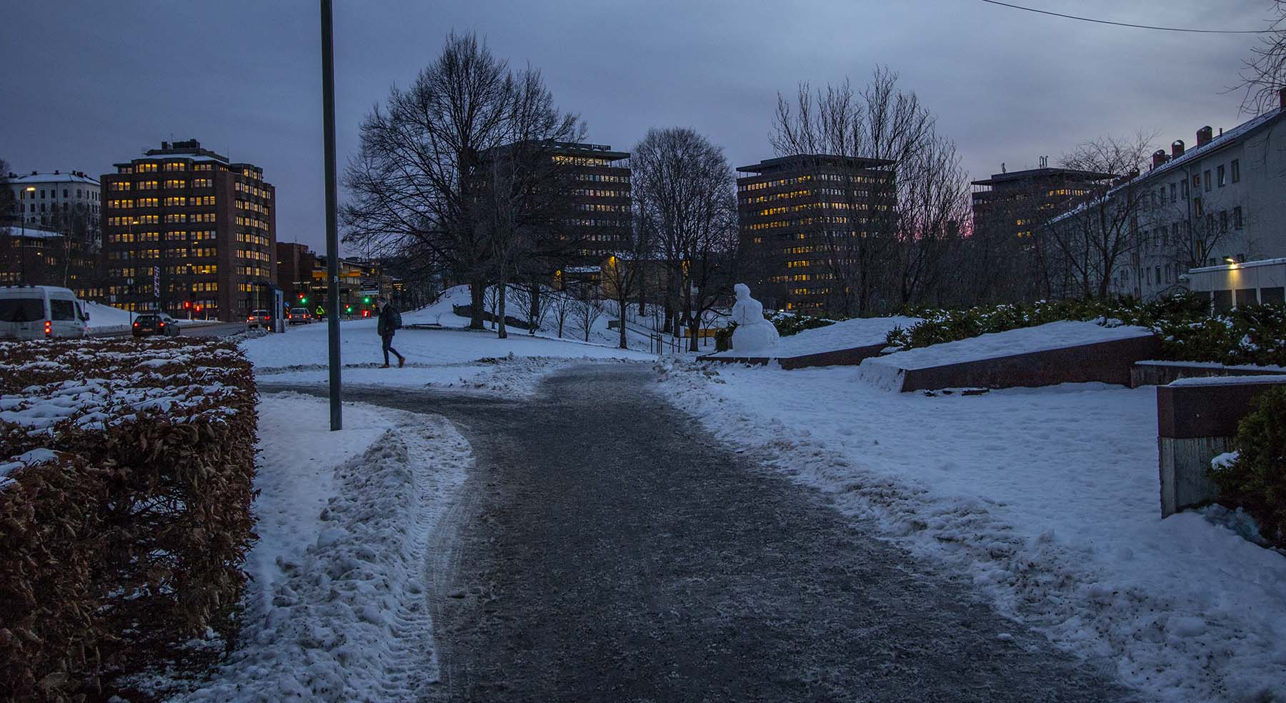 IMG_6956PathToStation Published April 15, 2019 at 1800 × 984 in Oslo, Norway Path cleared of snow on the walk to the station, Oslo, Norway
