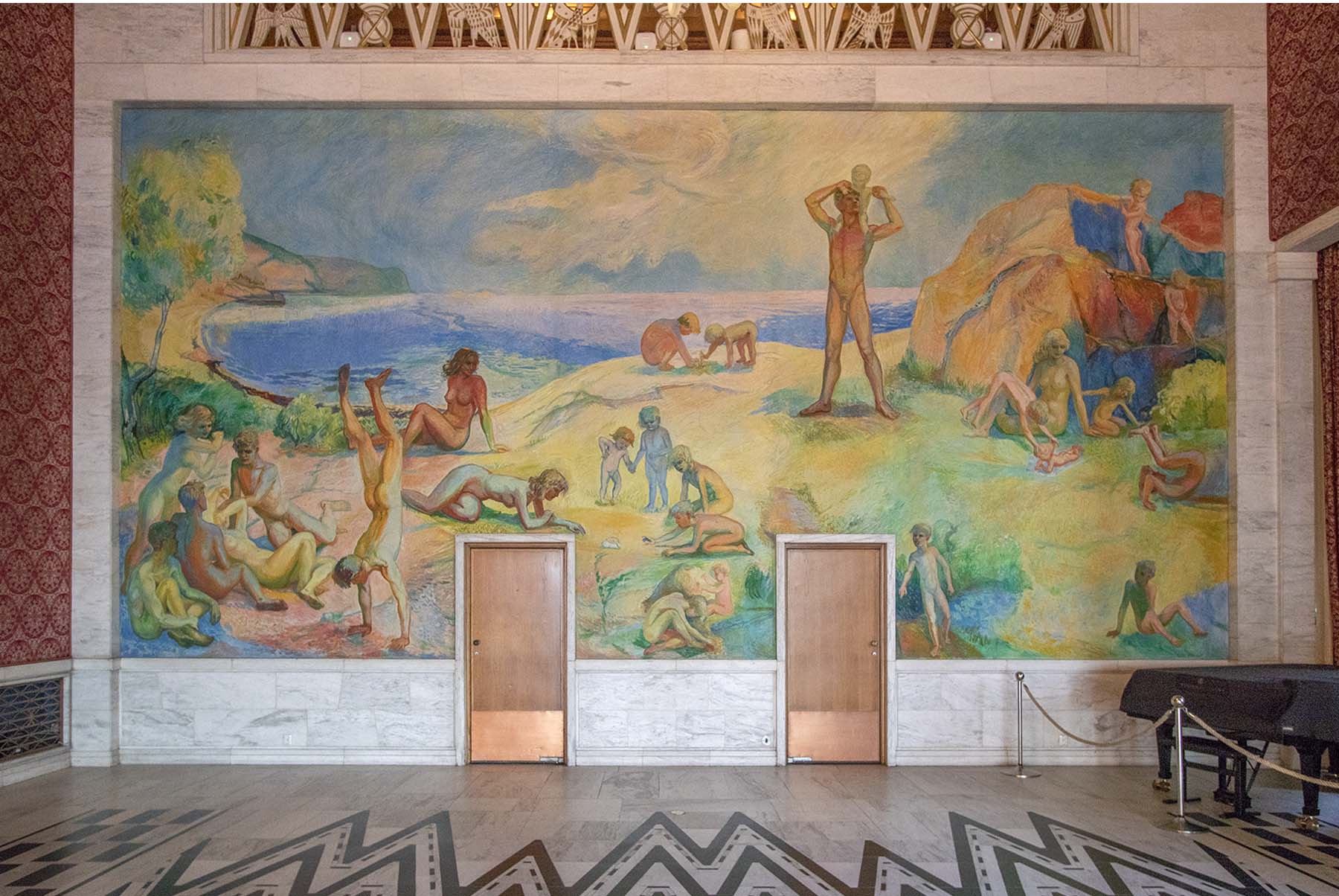 IMG_7197Mural Published April 15, 2019 at 1800 × 1204 in Oslo, Norway Naked beach mural, Oslo City Hall, Norway