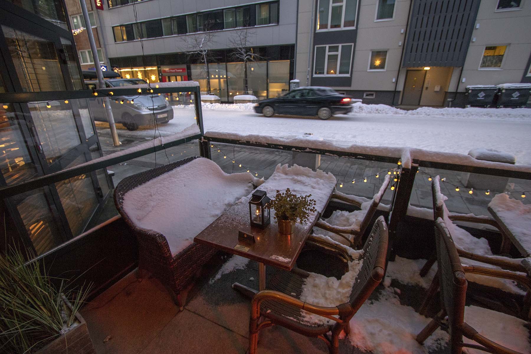 IMG_5663SnowySeating Published March 3, 2019 at 1800 × 1200 in Tromso, Norway Snowy restaurant seating, Tromso, Norway