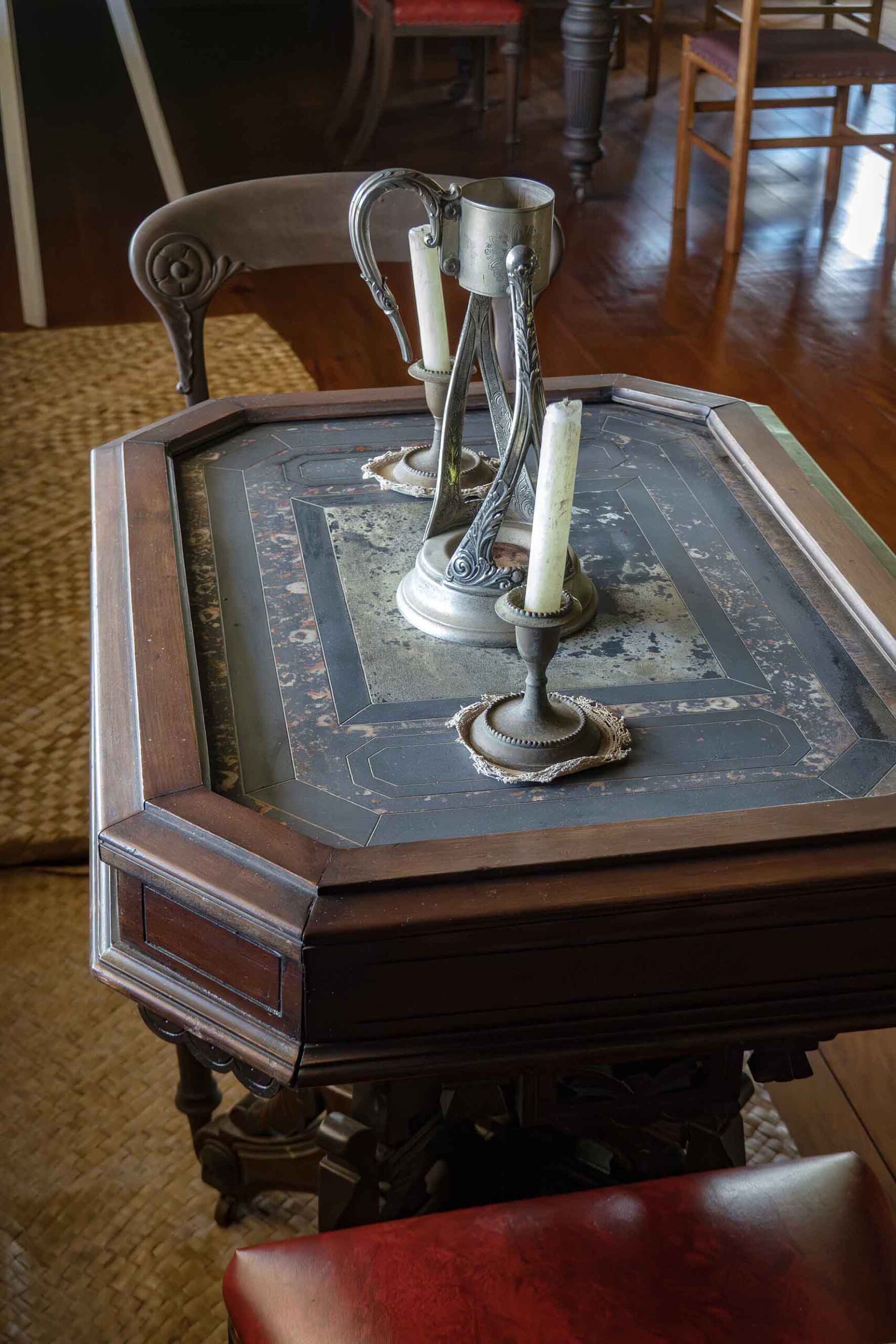 SJB06157 copyDesk_RED Published February 1, 2026 at 1707 × 2560 in Apia, Samoa Side table in the Robert Louis Stevenson Museum, Apia, Samoa