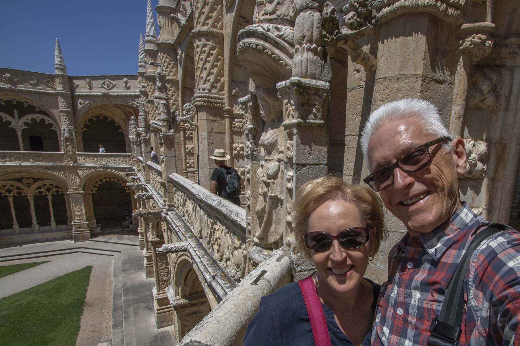 IMG_1856Us Published February 22, 2020 at 1800 × 1200 in Lisbon, Portugal Nic and John in the cloister of Jeronimos Monastery, Lisbon, Portugal