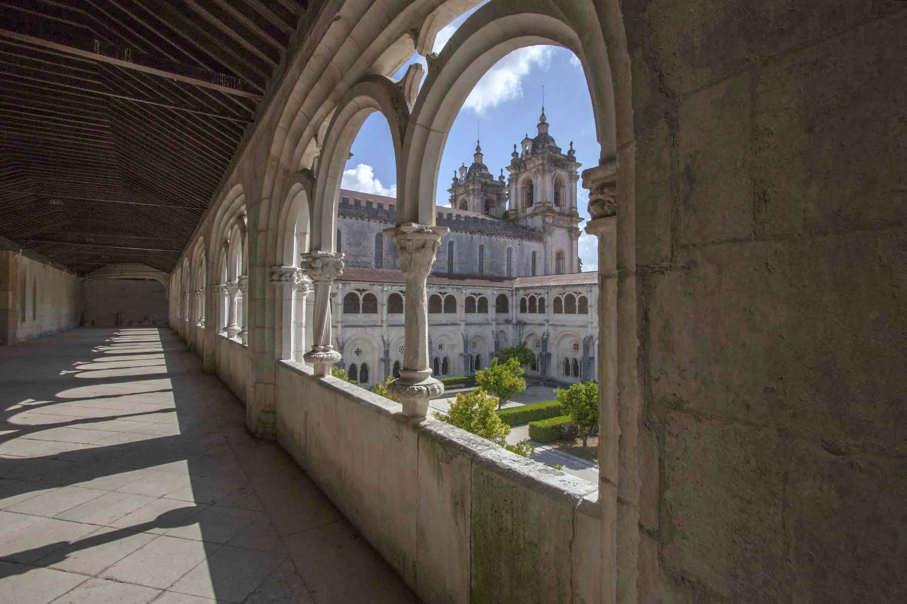 IMG_3785UpperLevel Published April 9, 2023 at 1800 × 1200 in Nazaré and Surrounds, Portugal Cloister arch view of the church at the Santa Maria Monastery in Alcobaça, Portugal