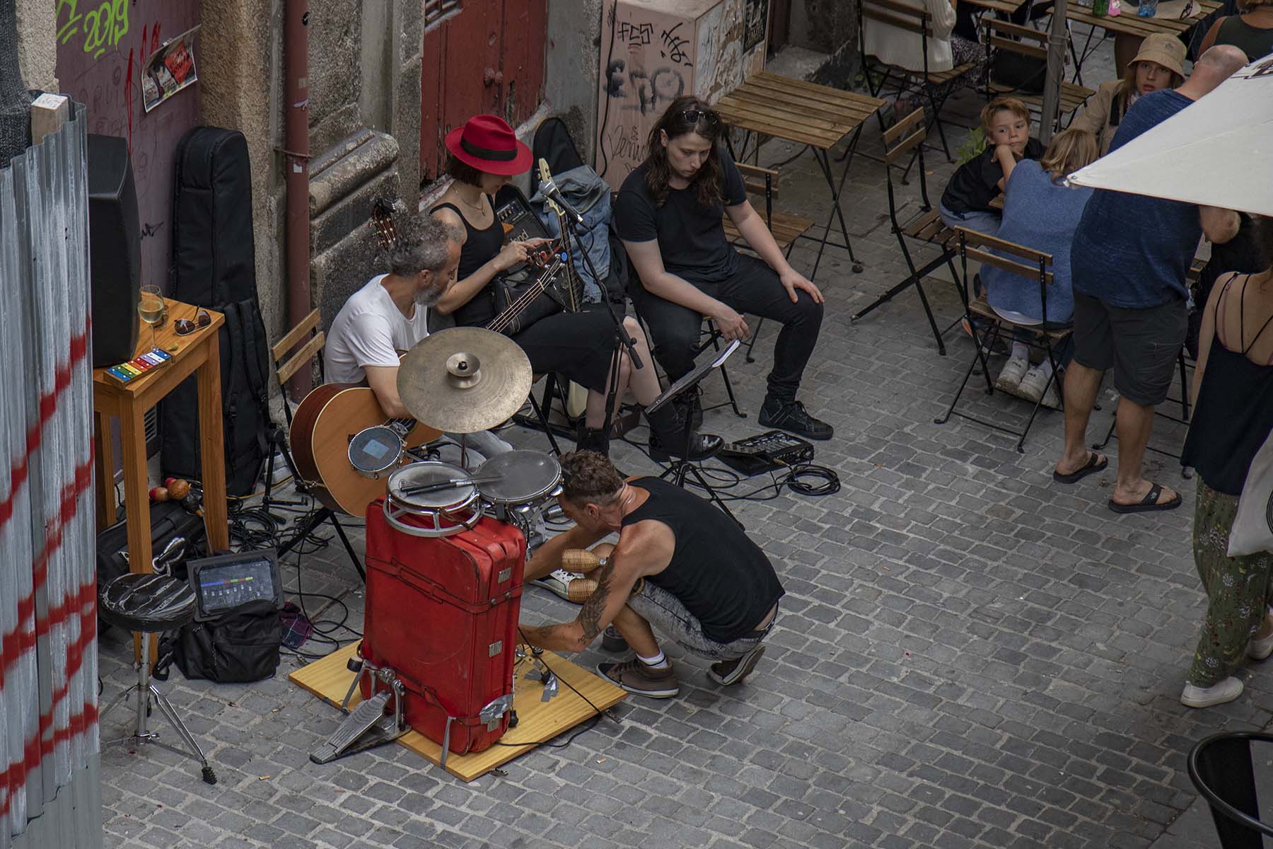 IMG_5187BumpIn Published June 18, 2023 at 1800 × 1200 in Porto, Portugal (Part 2) – River Cruise and Old City Musos setting up for their gig, Porto, Portugal