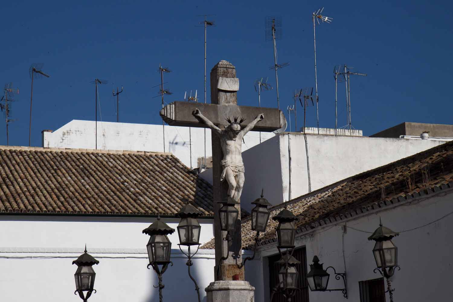 IMG_1090JesusLampsAerials Published June 27, 2014 at 1500 × 1000 in Cordoba, Spain Jesus amongst the lamps and aerials, Córdoba
