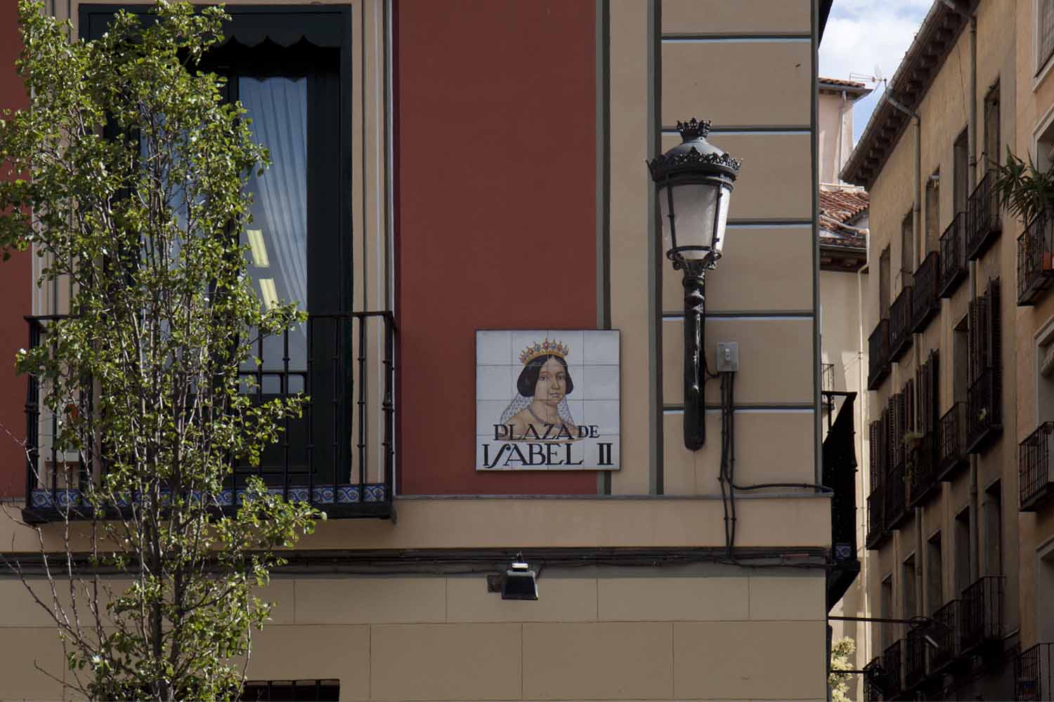 IMG_0588StreetSign Published June 25, 2014 at 1500 × 1000 in Final day in Madrid – The Prado Funky street sign for Plaza de Isabel II
