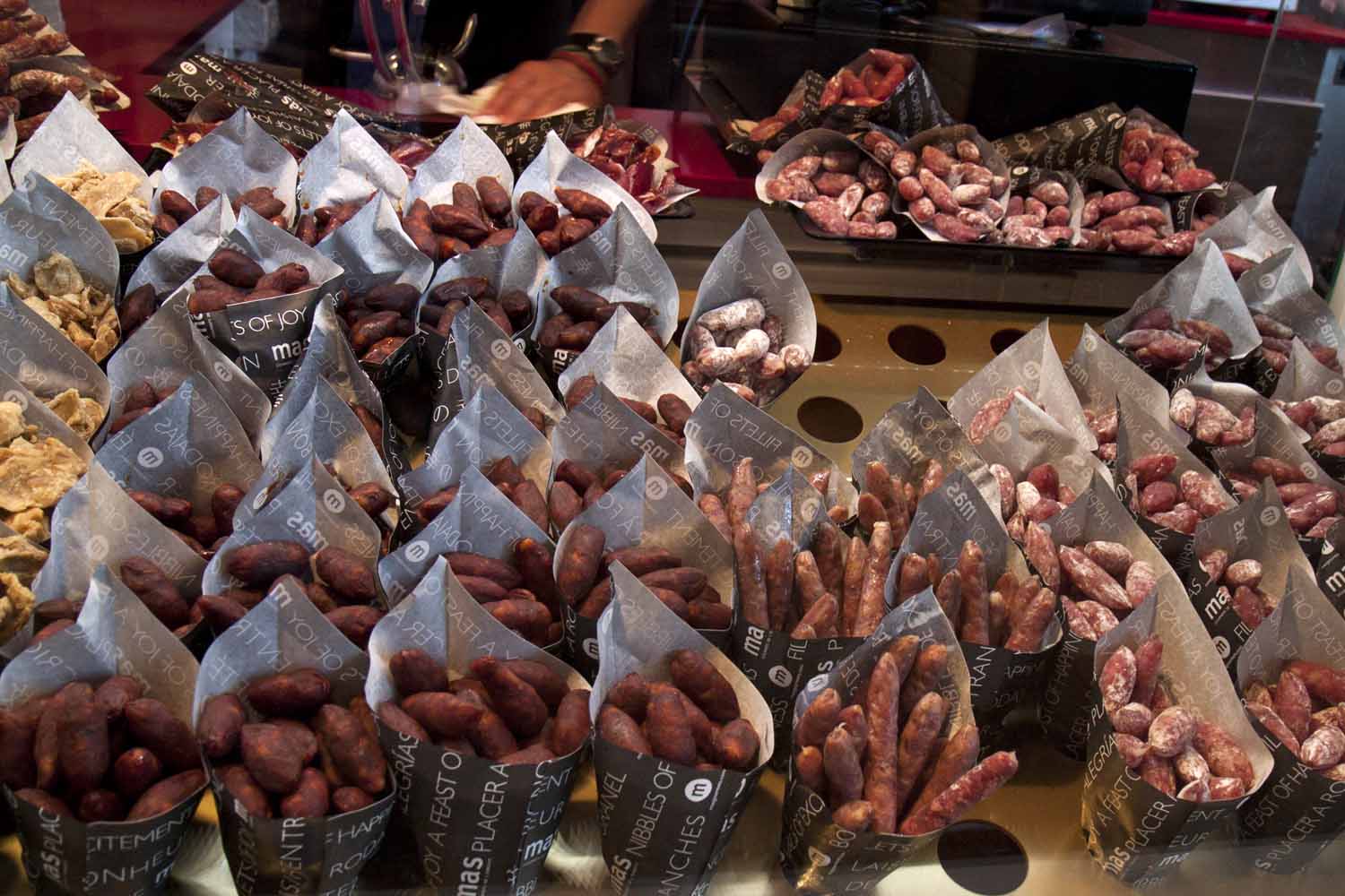 IMG_0626JustOMG Published June 25, 2014 at 1500 × 1000 in Final day in Madrid – The Prado Hunks of processed meats at Mercado de San Miguel, Madrid