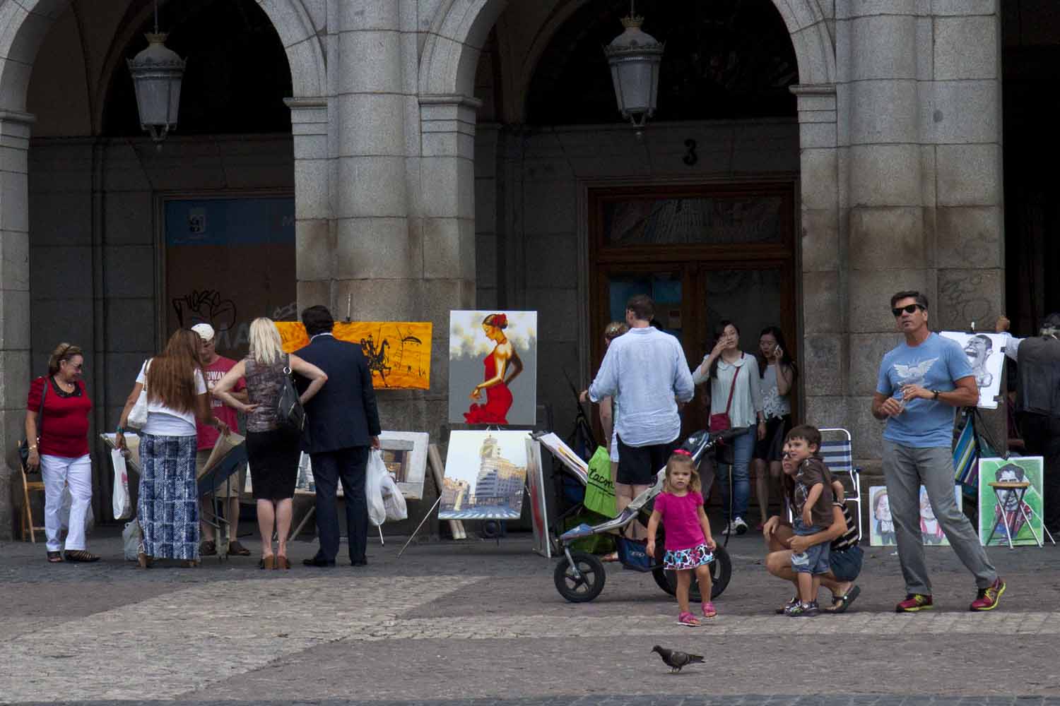 IMG_0632PlazaMayor Published June 25, 2014 at 1500 × 1000 in Final day in Madrid – The Prado Street artists, Plaza Mayor, Madrid