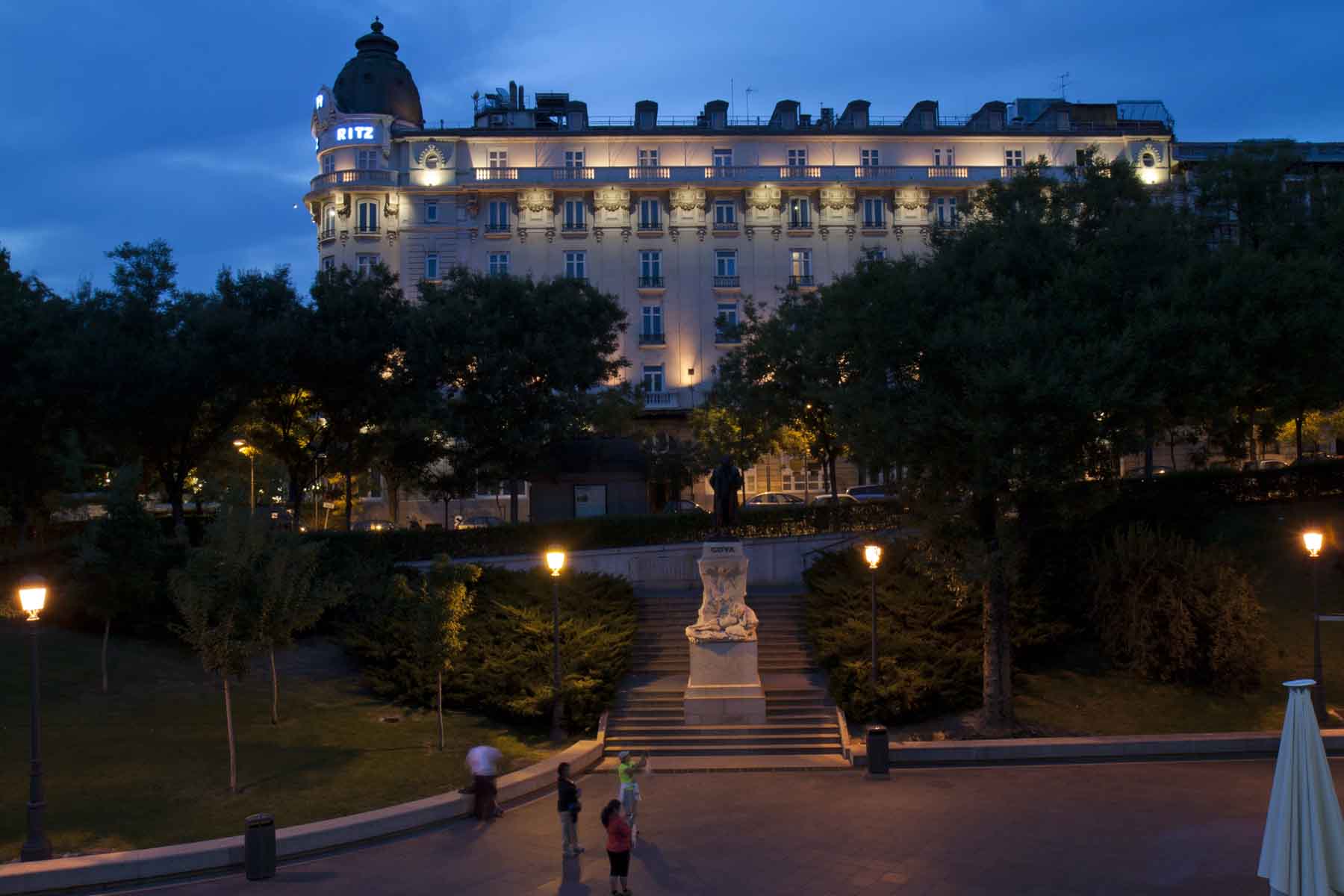 IMG_0703RitzFromPradoSteps Published June 25, 2014 at 1800 × 1200 in Final day in Madrid – The Prado View of the Hotel Ritz Madrid from the Prado, evening