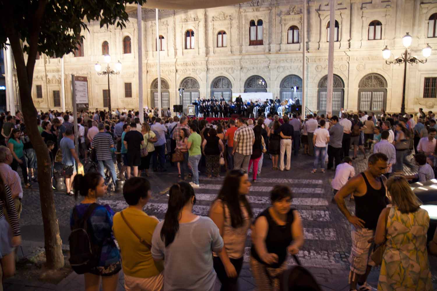 IMG_1393MusicOrchestra Published June 27, 2014 at 1500 × 1000 in Seville, Spain – Arrival & the Cathedral Evening music performance in Plaza San Francisco, Seville