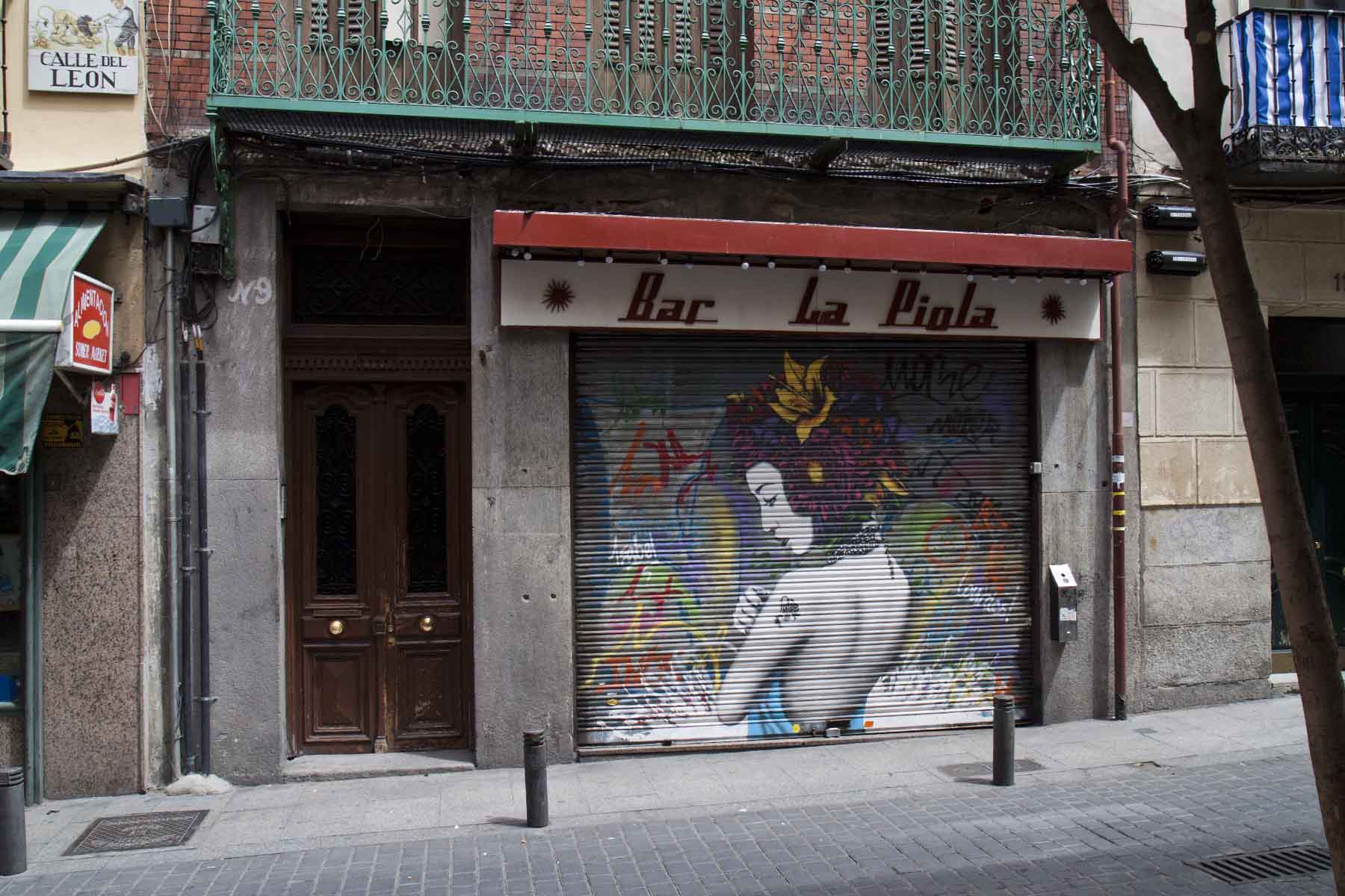 IMG_9363RollerDoorArt Published June 22, 2014 at 1800 × 1200 in To Madrid The closed, yet lovely, shutters of Bar La Piola, Madrid