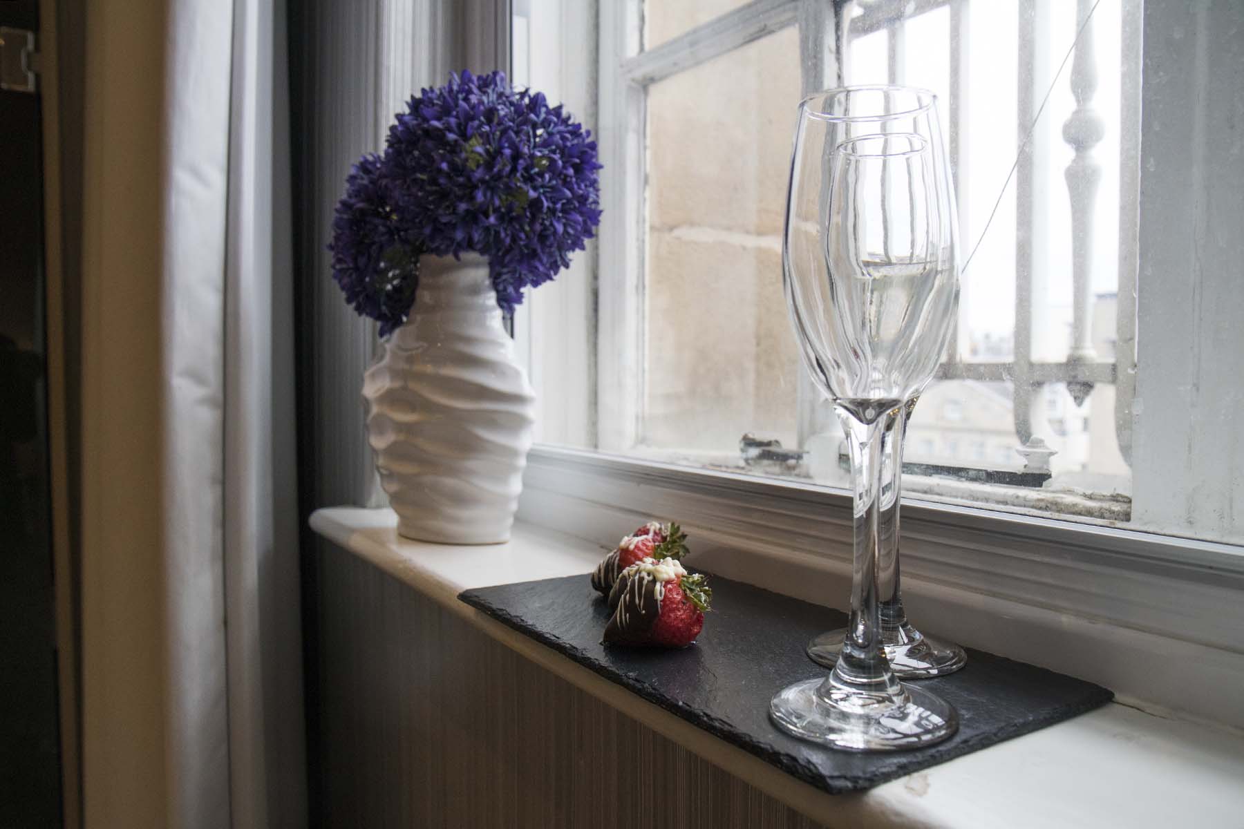 IMG_0348Flutes Published May 15, 2017 at 1800 × 1200 in Edinburgh (Part 1) – Edinburgh Castle, Palace of Holyroodhouse & Arthur’s Seat Flowers, flutes and strawberries, the Inn on the Mile, Edinburgh, Scotland