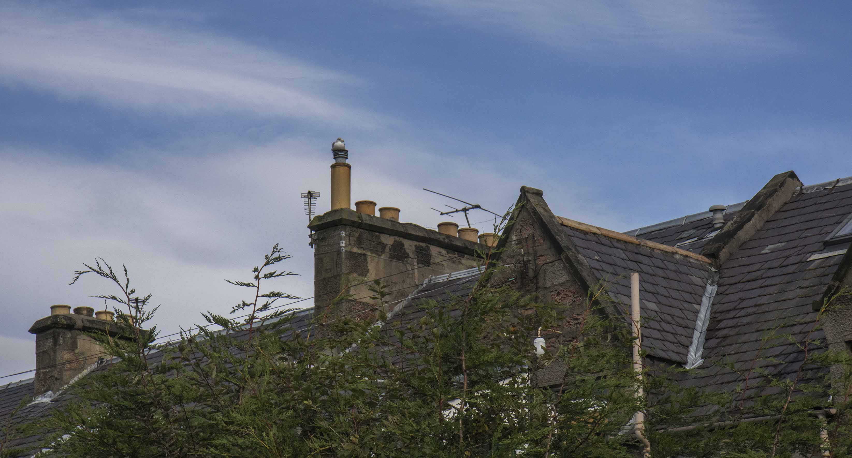 IMG_3251Chimneys Published June 5, 2017 at 3291 × 1772 in Inverness, Culloden & Cawdor Chimneys and pigeon, Inverness, Scotland