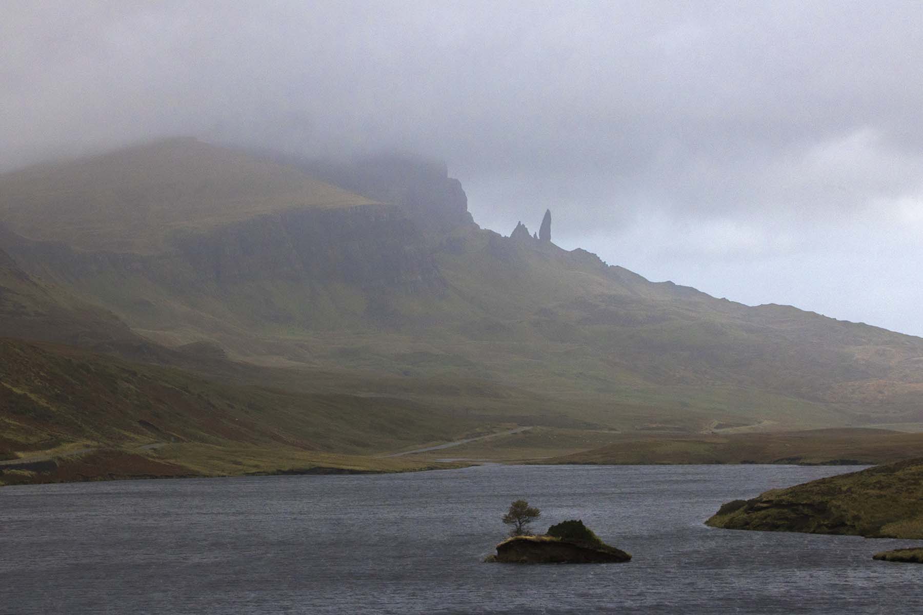 IMG_3032Storr Published June 1, 2017 at 1800 × 1200 in Isle of Skye (Part 2) – the Quiraing, Culnacnoc & Portree Distant Old Man of Storr, shrouded in mist, Isle of Skye, Scotland