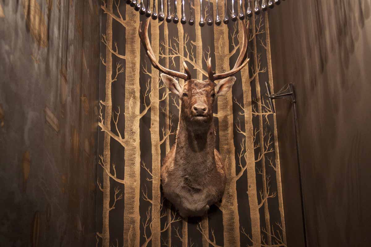 IMG_8569StairwellStag Published July 2, 2013 at 1200 × 800 in Kensington Palace, The Ledbury & the West End The ‘stairwell stag’ on the way the kitchen at the Ledbury