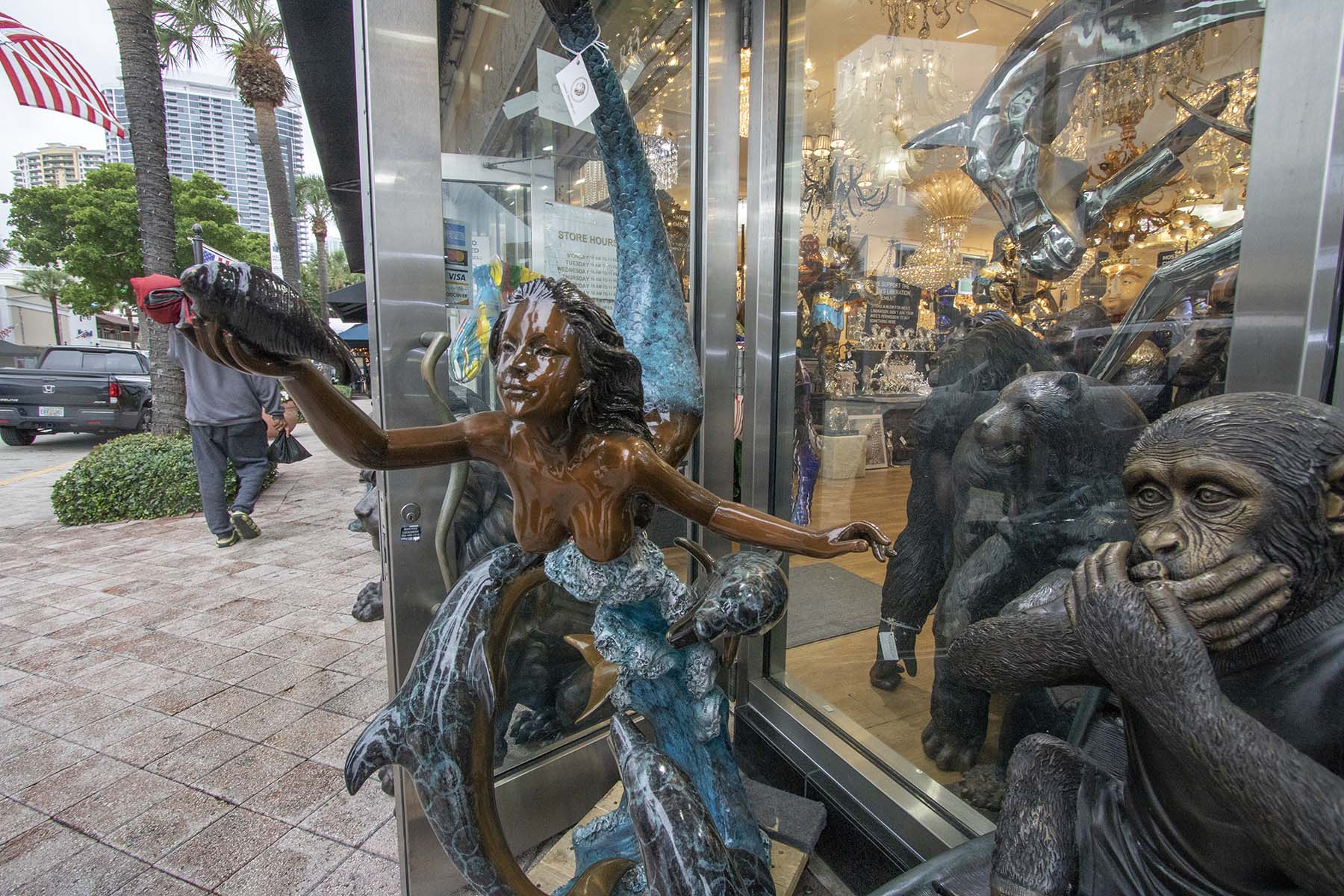 IMG_6062StatueStore Published October 6, 2023 at 1800 × 1200 in Caribbean Cruise (Part 1) – Fort Lauderdale Close up of mermaid and gob-smacked monkey outside shop, Fort Lauderdale