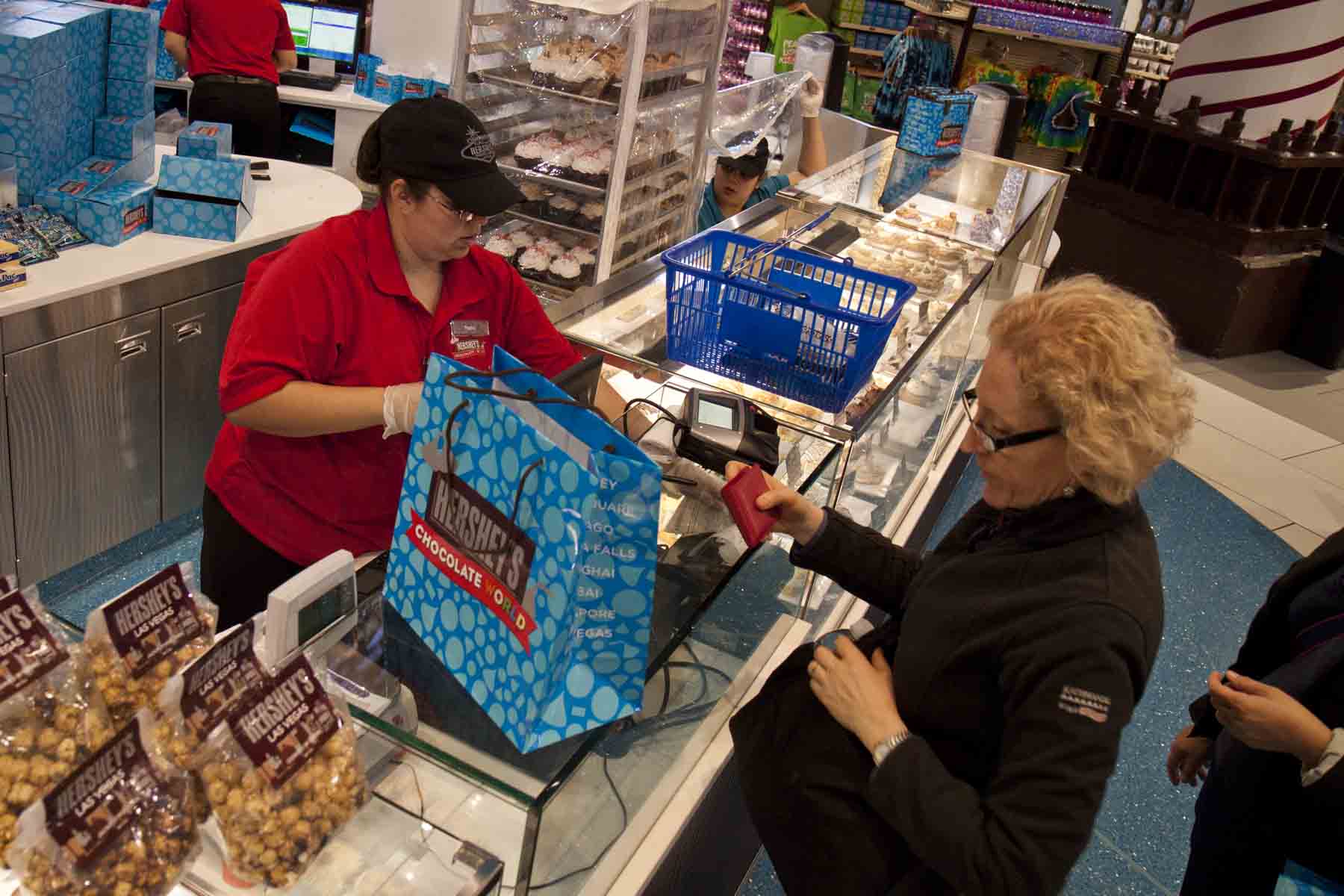 IMG_0095BuyingHersheys Published December 5, 2014 at 1800 × 1200 in Las Vegas – ‘Absinthe’ & ‘Jubilee’ Yes, that blue bag is Nic’s purchase at Hershey’s, Las Vegas