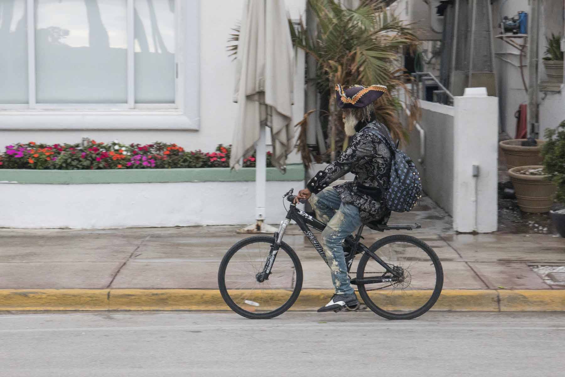 IMG_6082PirateOnABike Published May 11, 2017 at 1800 × 1200 in Miami – Antique Car City Tour & Art Deco Delights Pirate on a bike, early morning, Miami Beach, Florida